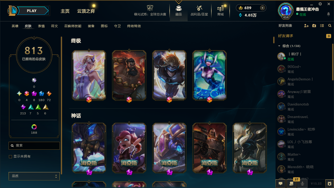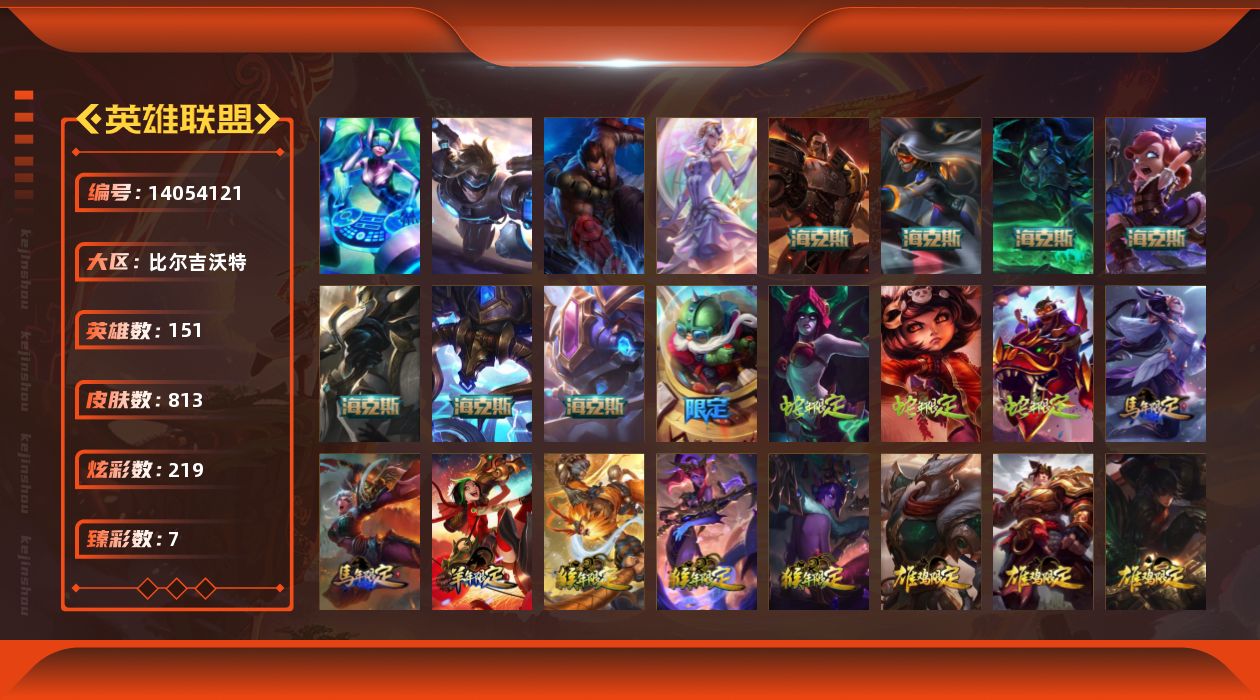 【62412】[14054121]t30985【比尔吉沃特】813皮肤 219炫彩 7臻彩 8神话/180限定/72传说/151英雄 账号等级:454【重要头像】锦鲤娜美 星守阿狸 爱意绵绵 爱情之歌 心型钥匙 觅心游侠卢锡安 觅心之翼奎因 雪花 银河魔装机神安妮 两仪无极 小希 万圣节卡特琳娜 击拳 救生圈 小斗 小多 小望与小牙 小智 沐浴震惊 星界起源