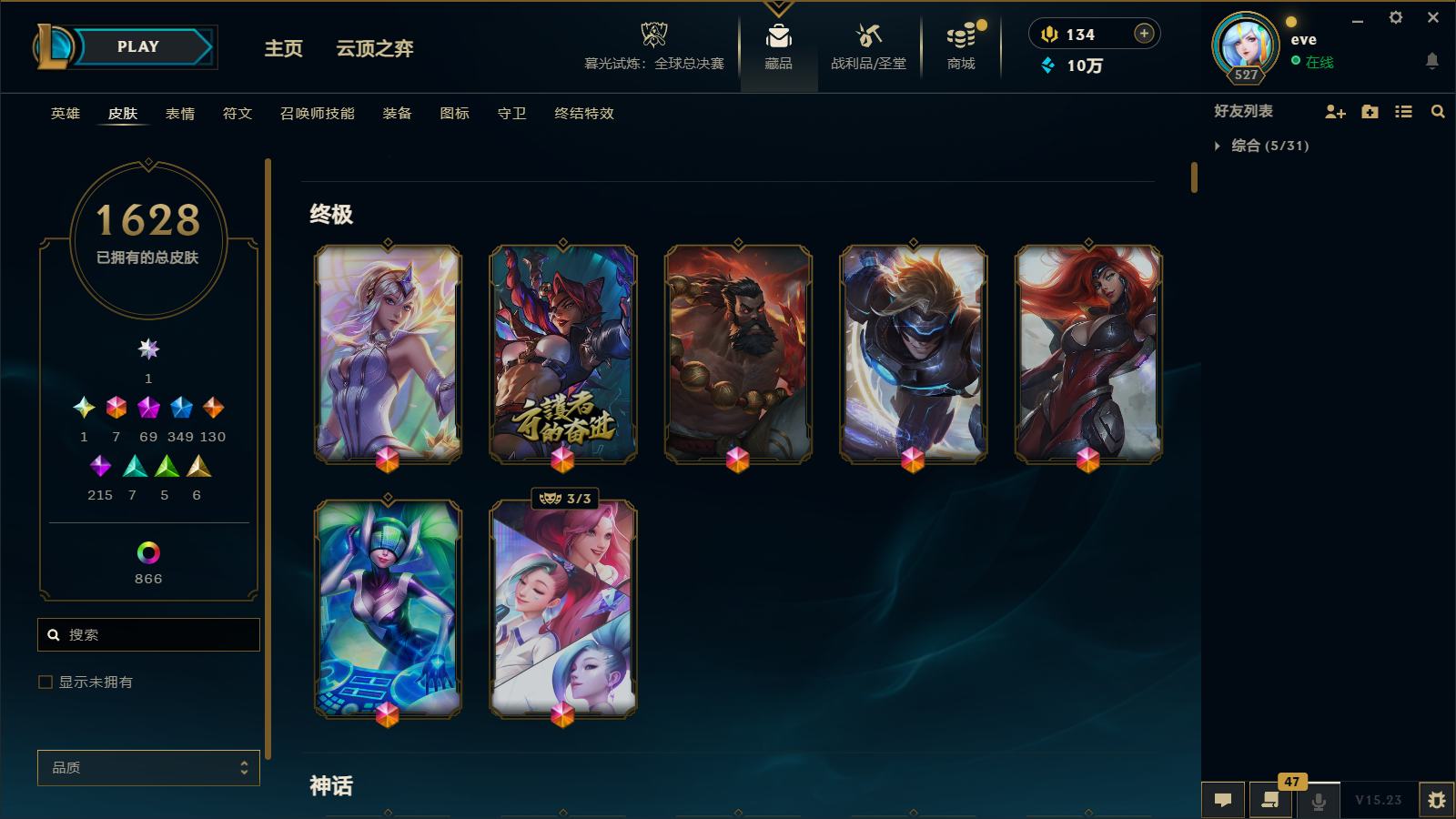 【62754】[14055006]雪花头!金蛇巨星腕豪!创世黑夜亚索!三色龙虾(乘龙御天+亢龙有悔)!斩星魔剑!T1冠军签名套!云顶6神话小小英雄【古琴余韵小小娑娜!神龙尊者小小李青!灵魂莲华小小永恩!灵魂莲华小小瑟提!玉剑传说小小莫甘娜原计划小小菜大师!】1神话棋盘【水云天池】!E12286.暗影岛-1628皮1当阿狸1圣堂69神话349限定866炫彩84臻彩-DRX冠军套!FWG冠军套!ED