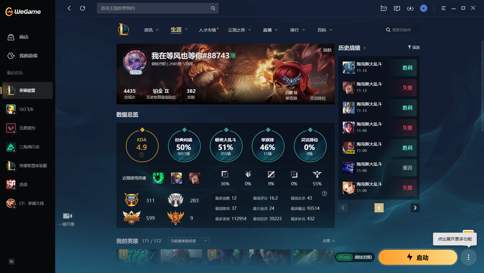 游戏区服:英雄联盟 / 电信 / 钢铁烈阳
