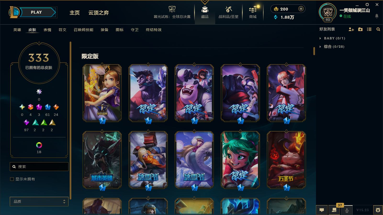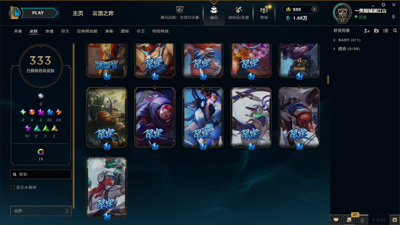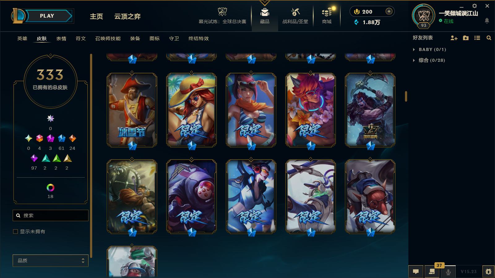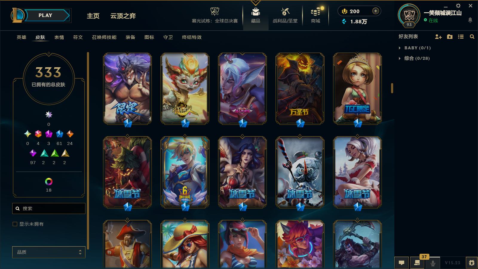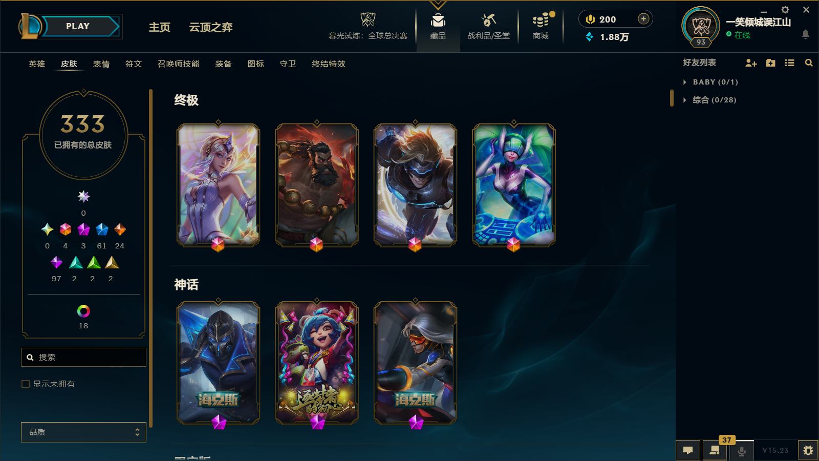 【62964】[14056507]大元素使拉克丝!未来战士EZ!E12289德玛西亚-333皮4终极3神话61限定18炫彩1臻彩