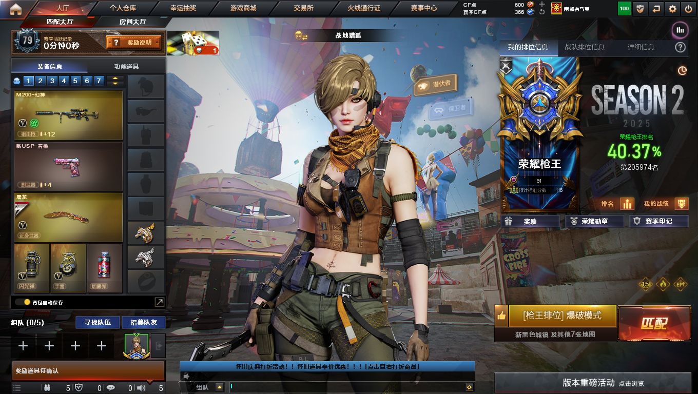 游戏区服:穿越火线 / 南部战区 / 广西一区互 通