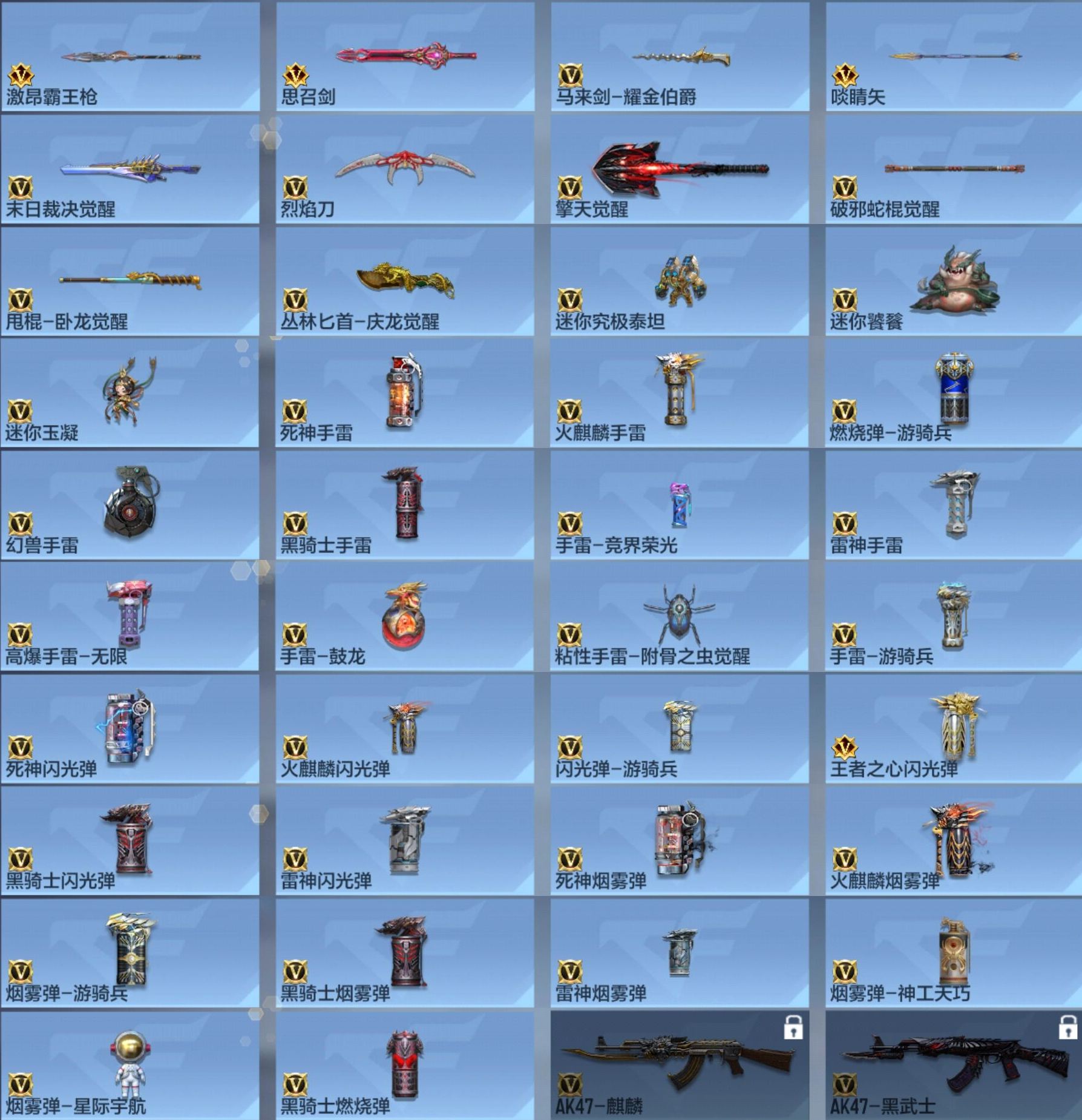 【65319】[14064975]x872 VIP7,王者武器10,英雄级武器234,万化402,角色47 【王者武器】:王者之心/王者之影/王者之势/王者之兽/王者之狱/王者之蝶/M12S-雷霆王者/王者之霆/王者之魂/王者之心闪光弹 ;【热门皮肤】:蝴蝶刀-极光-清凉夏日/AK47-血武士-甲骨文渊/AK47-火麒麟-不屈老兵/M4A1-黑龙-暗月/98K-黑骑士-能量核心/王者之锋-Hea