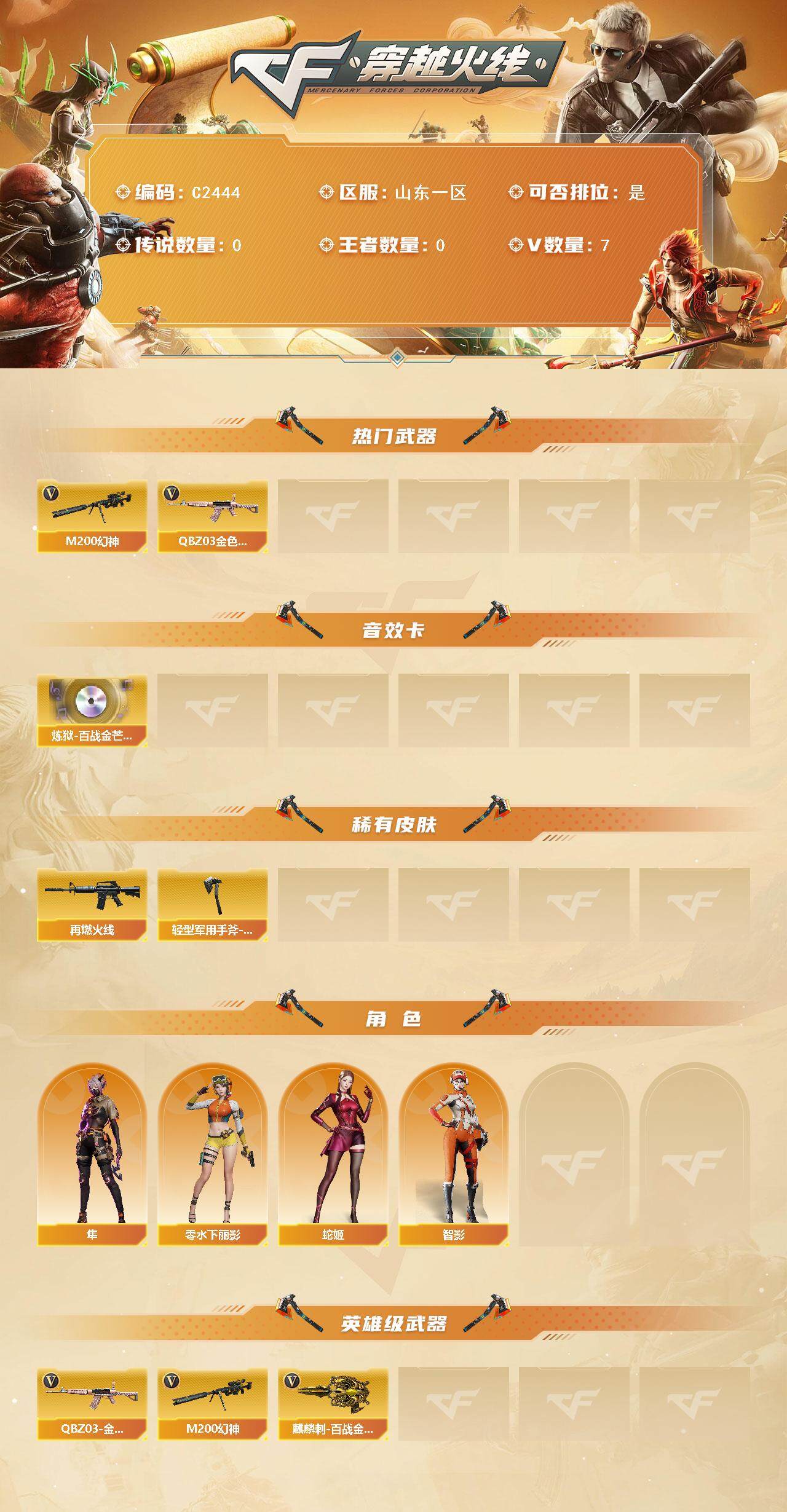【65397】【65397】[14065386]山东一区-7V-0王者-0炫金【双全号 QBZ03-金色蔷薇,M200-幻神】【热门武器】:QBZ03-金色蔷