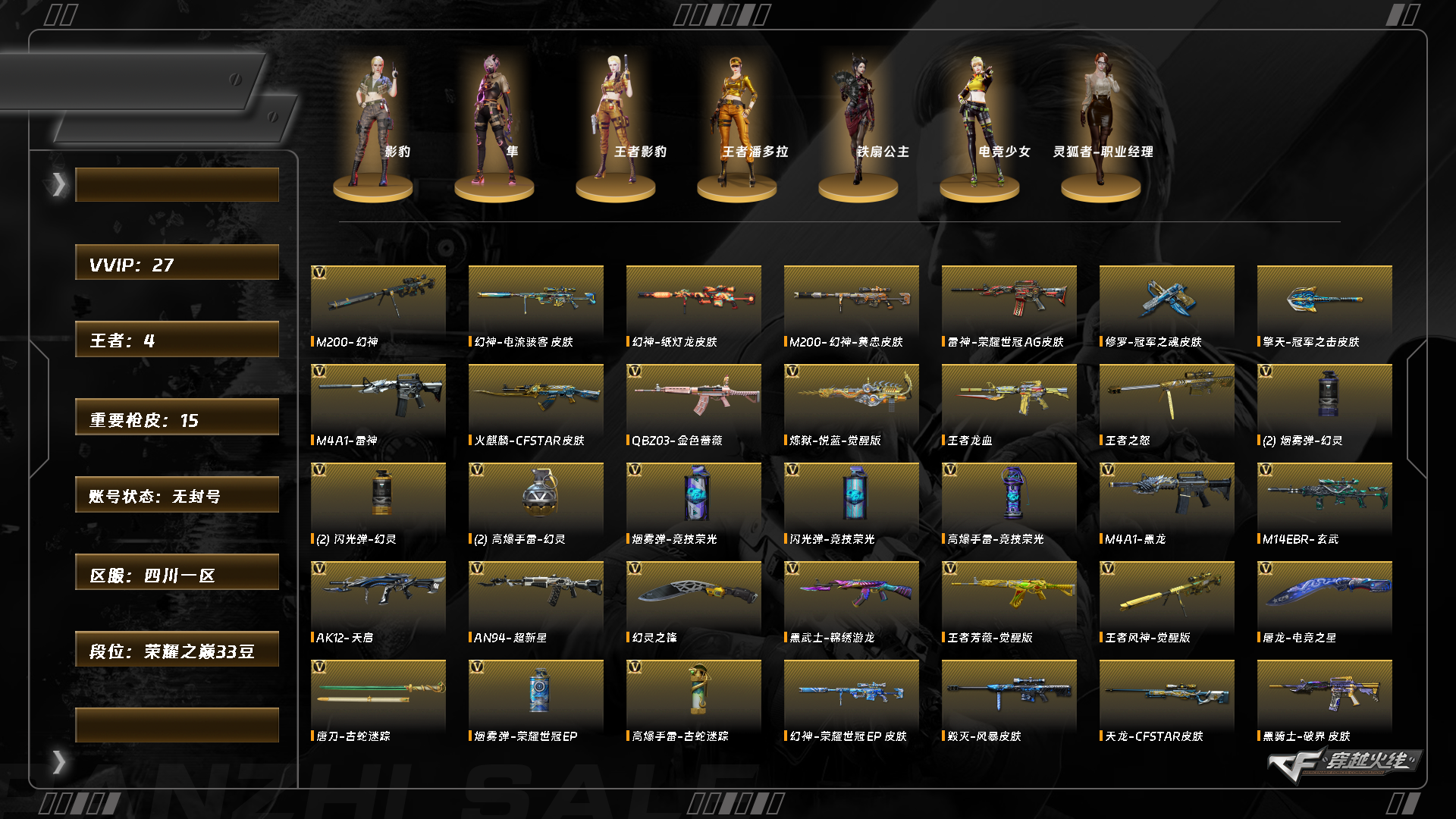 【65452】TE9119//西部/四川一区/钱包注销/可排位/可二次/掌火ID;409257525/25V/幻神/幻神荣耀世冠EP/幻神纸灯龙/幻神电流骇客/幻神黄忠/王者风神/QBZ金色蔷薇/玄武/王者蔷薇/朱雀蛇隐宗/雷神精英刀锋/火麒麟零纪元/王者龙血/王者之怒/双面神竞魂/牛牛AK47/四防已开/王者影豹/职业经理/王者潘多拉/四防未开/隼/【音效卡】/极光音效卡/黑骑士音效卡/金色蔷
