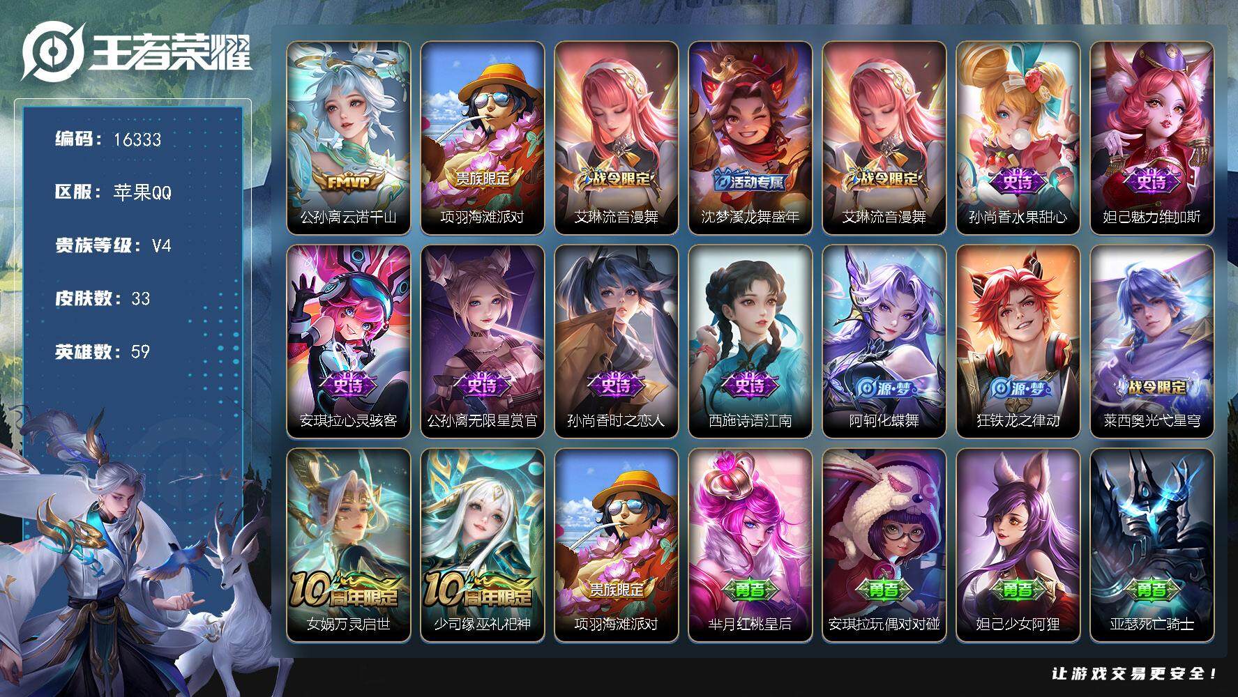 游戏区服:王者荣耀 / 苹果系统 / QQ帐号