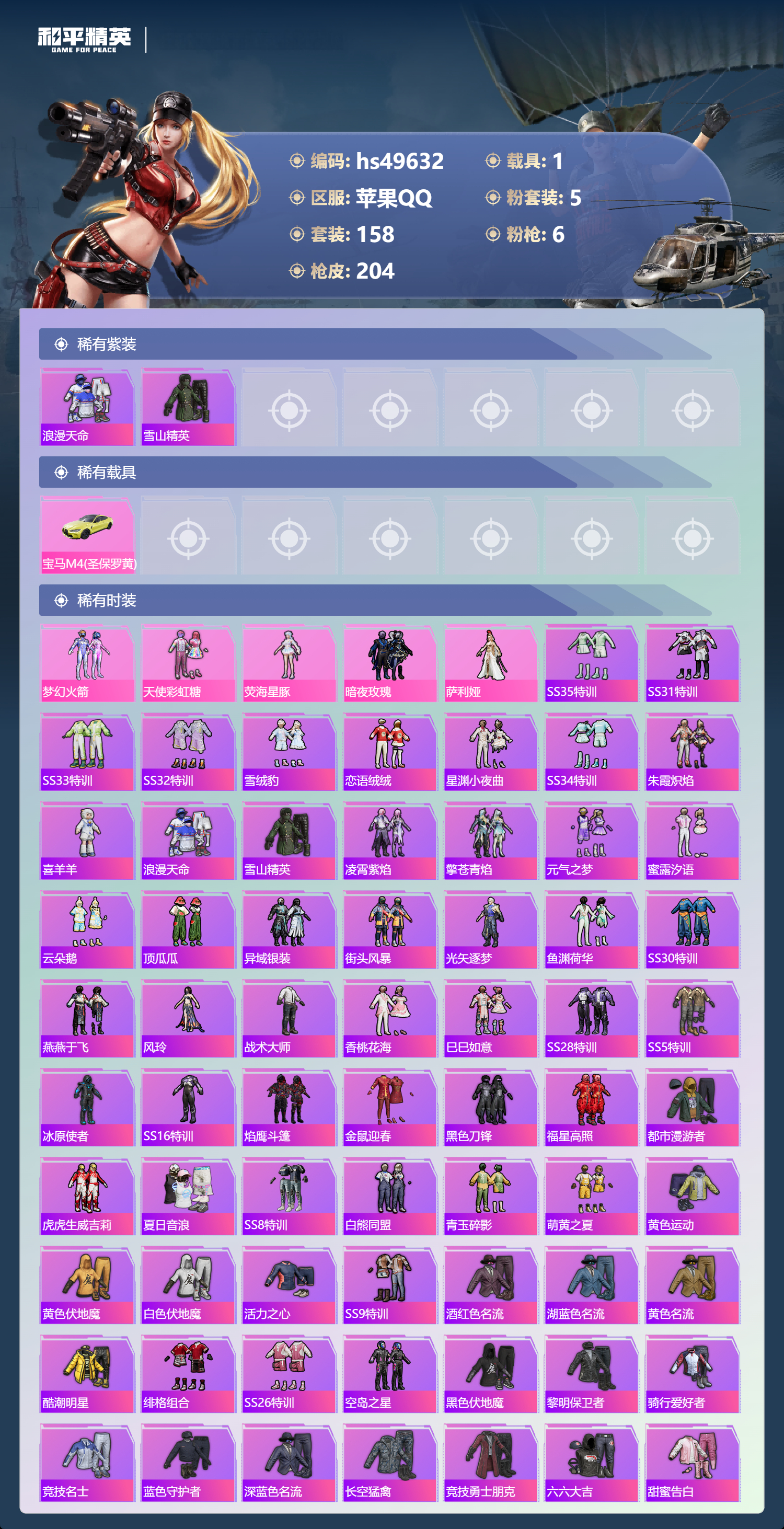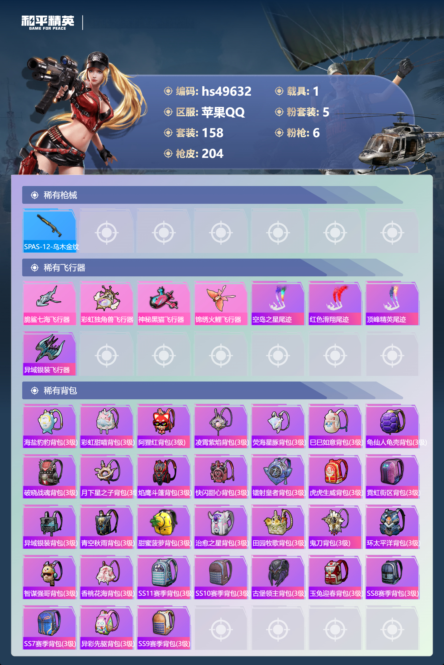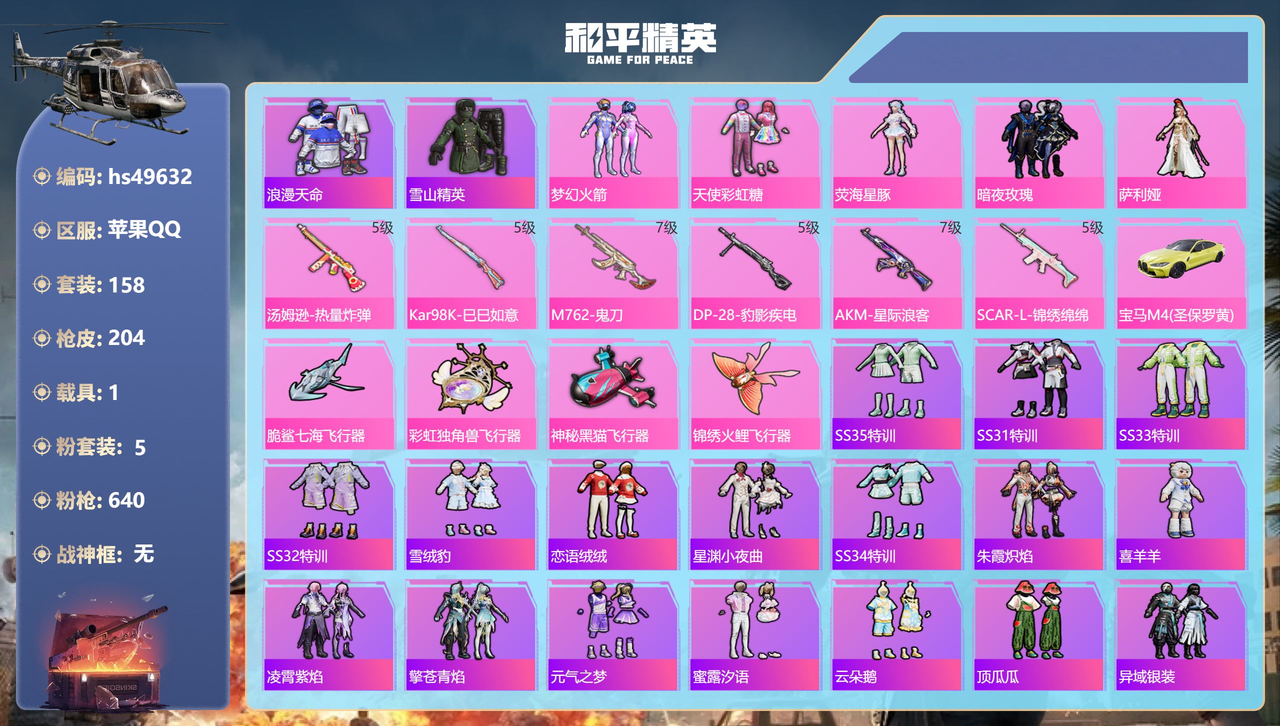 游戏区服:和平精英 / 苹果系统 / QQ帐号