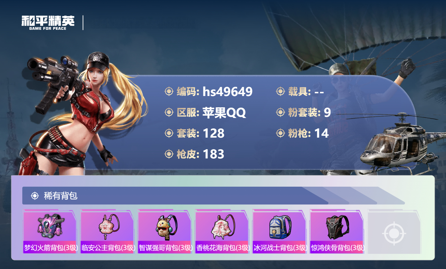 游戏区服:和平精英 / 苹果系统 / QQ帐号
