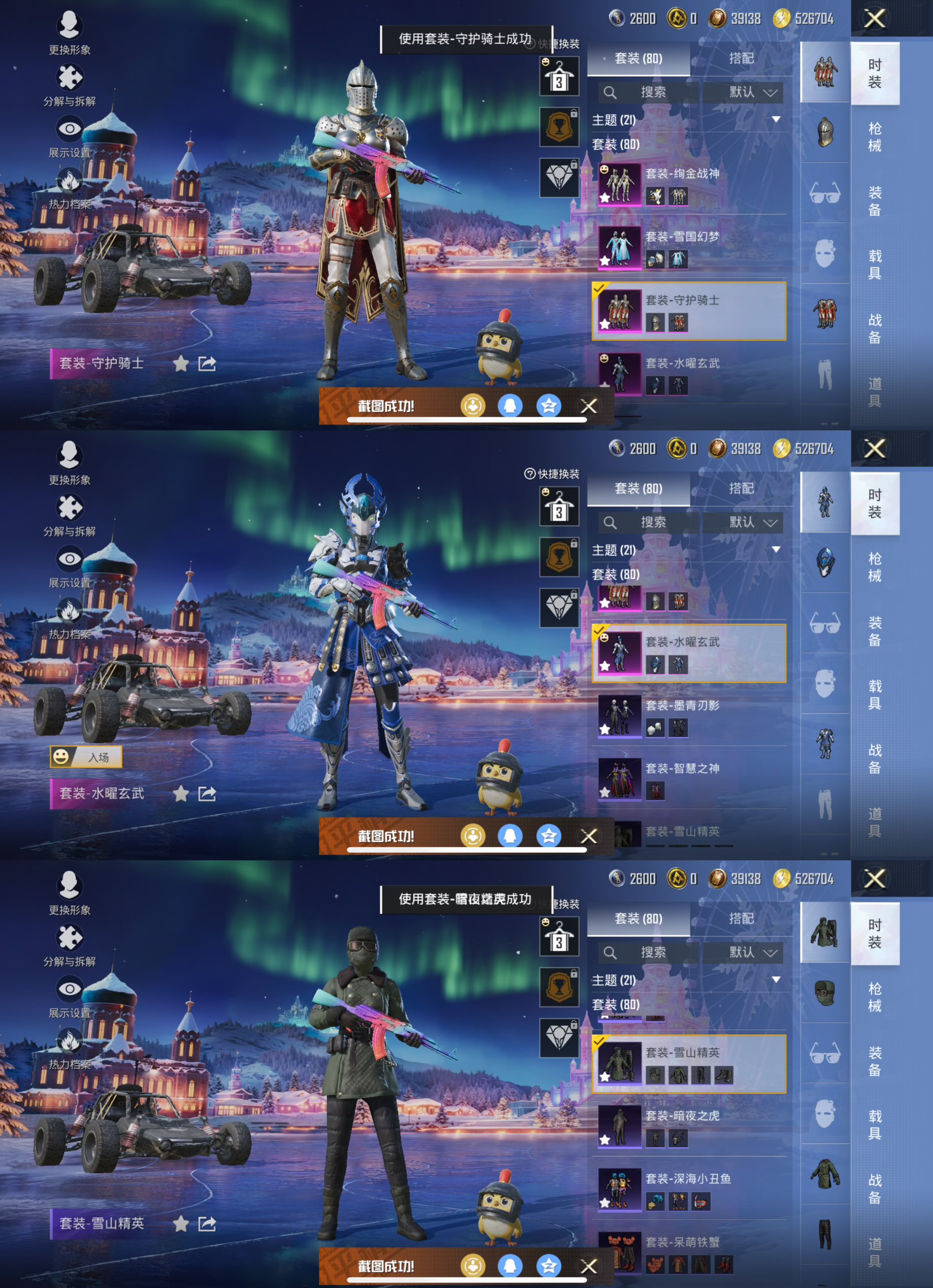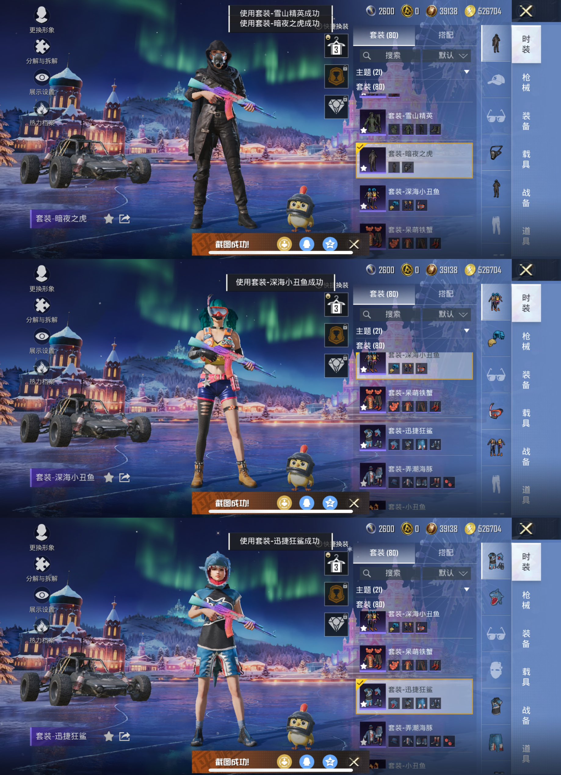 【65992】【可二次】【苹果QQ】龟仙人 绚金战神 漫步者 都市猎人 迅捷狂鲨 水曜玄武 至尊龙雀飞行服 雪国幻梦 暗夜之虎 守护骑士 深海小丑鱼 AKM影袭 雪山精英