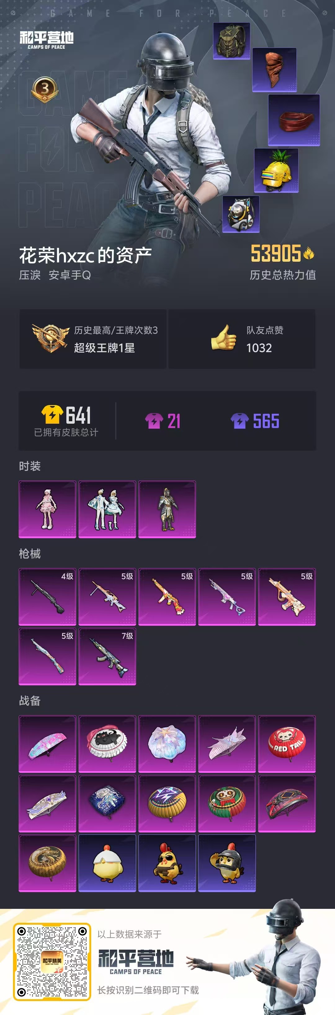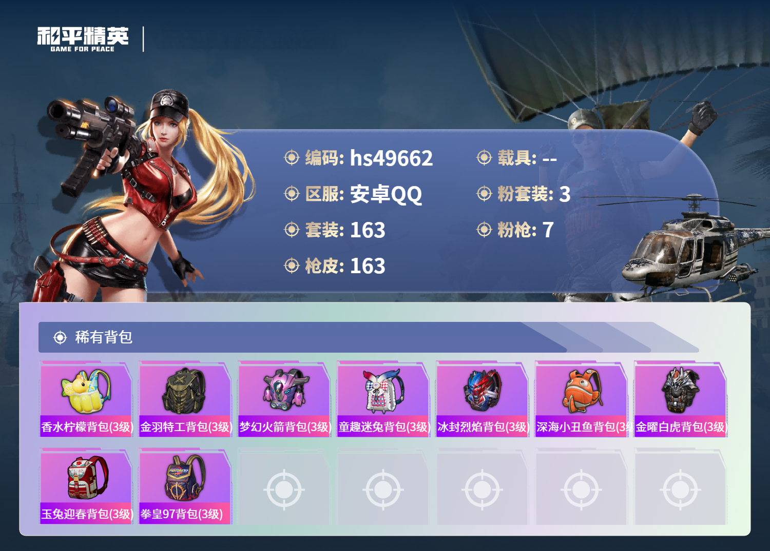 游戏区服:和平精英 / 安卓系统 / QQ账号