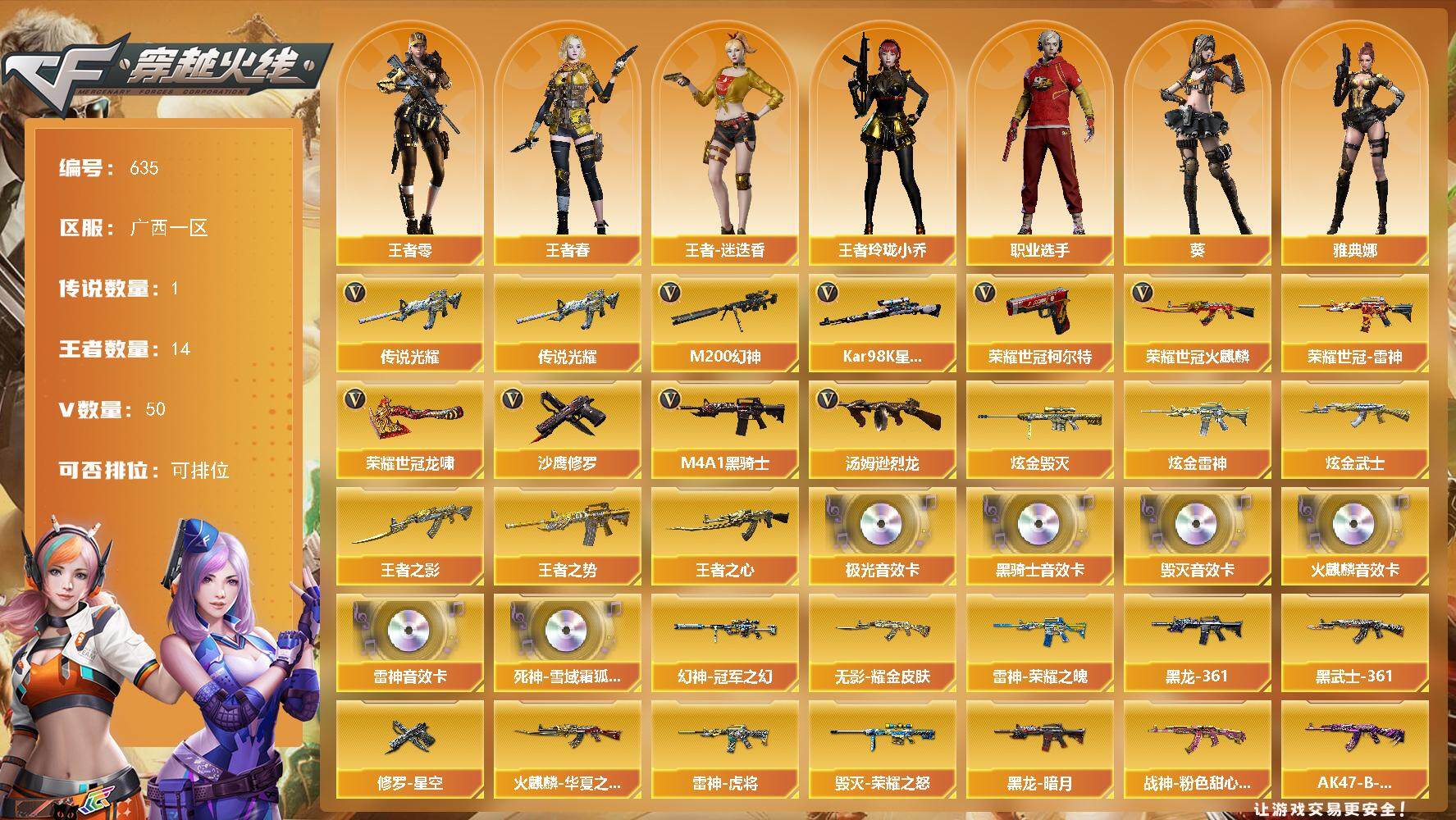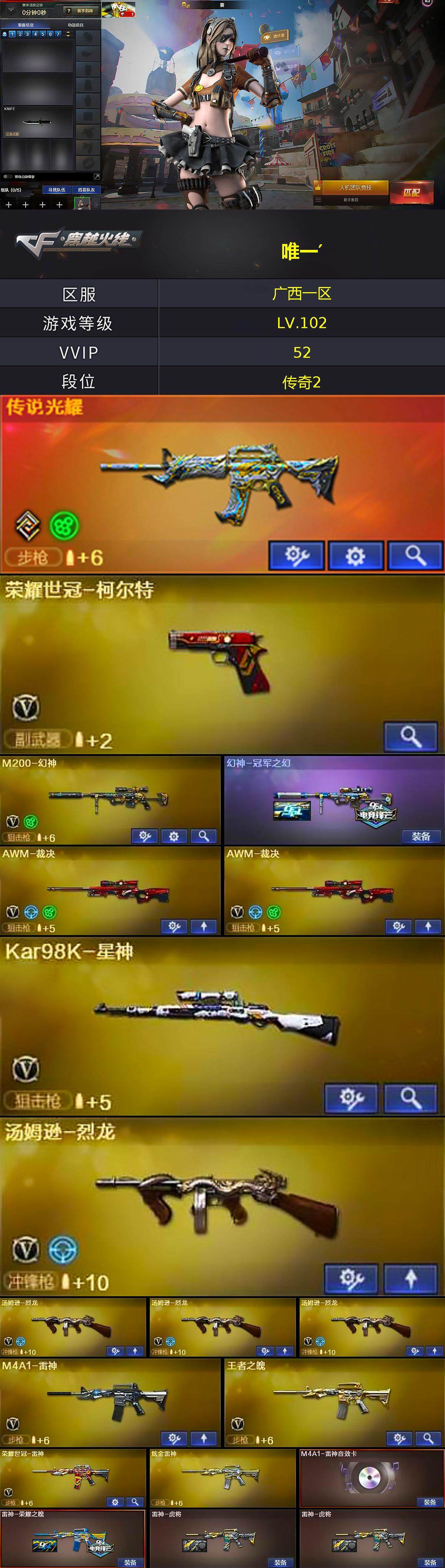 【66023】【66023】广西一区-50V-14王者-4炫金【传说武器】:传说光耀【热门武器】:传说光耀,M200-幻神,荣耀世冠-火麒麟,荣耀世冠-雷神,