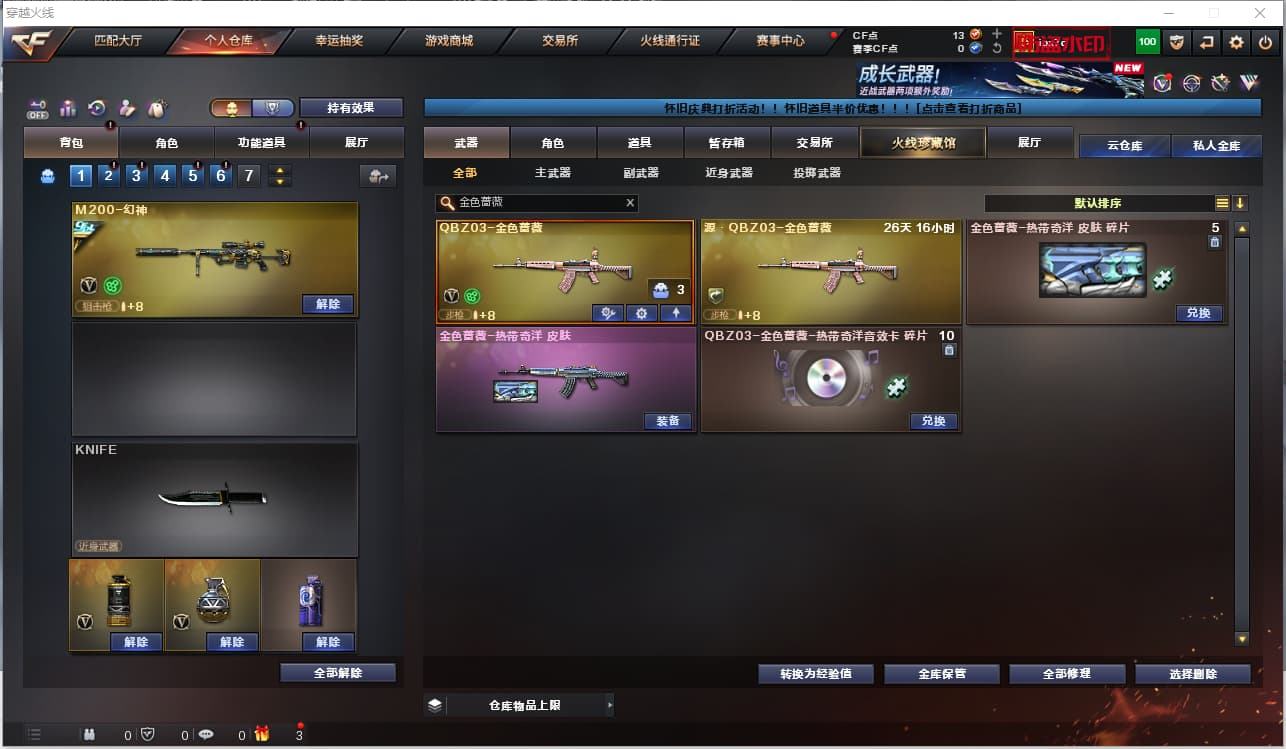 【66181】【66181】[14068902]T192089 (双色幻神+白虎小人枪+炼狱小人枪+qbz)cf北部/黑龙江区/16V/幻神+agcfpls2