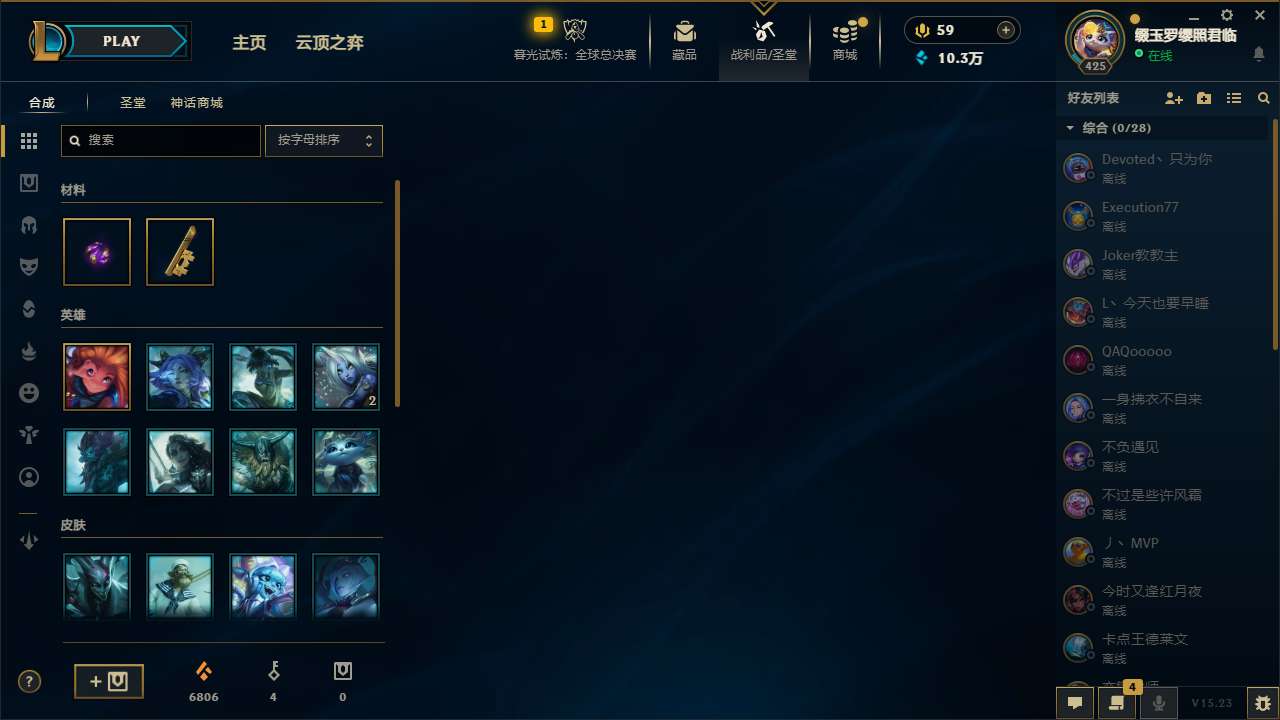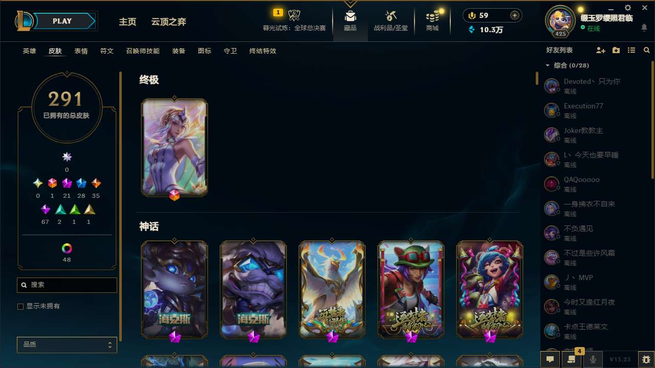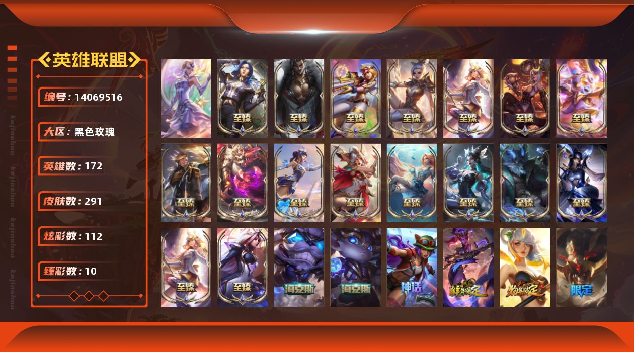 【66321】[14069516]t31053【黑色玫瑰】291皮肤 112炫彩 10臻彩 21神话/28限定/35传说/172英雄 账号等级:425 云顶神话:1 单双排段位:青铜【重要头像】云顶战斗学院伊泽瑞尔 黎明使者索拉卡 黑夜使者索拉卡 青花瓷拉克丝炫彩 青花瓷拉克丝 星守卡莎炫彩 灵魂莲华阿狸炫彩 灵魂莲华索拉卡 幼犬沃里克 北极星神黛安娜 北极星神黛安娜炫彩