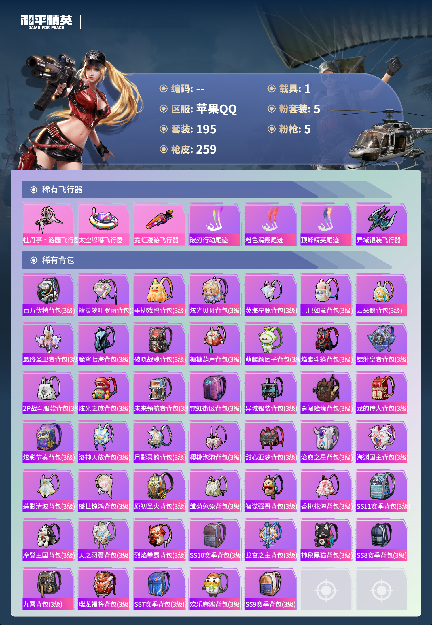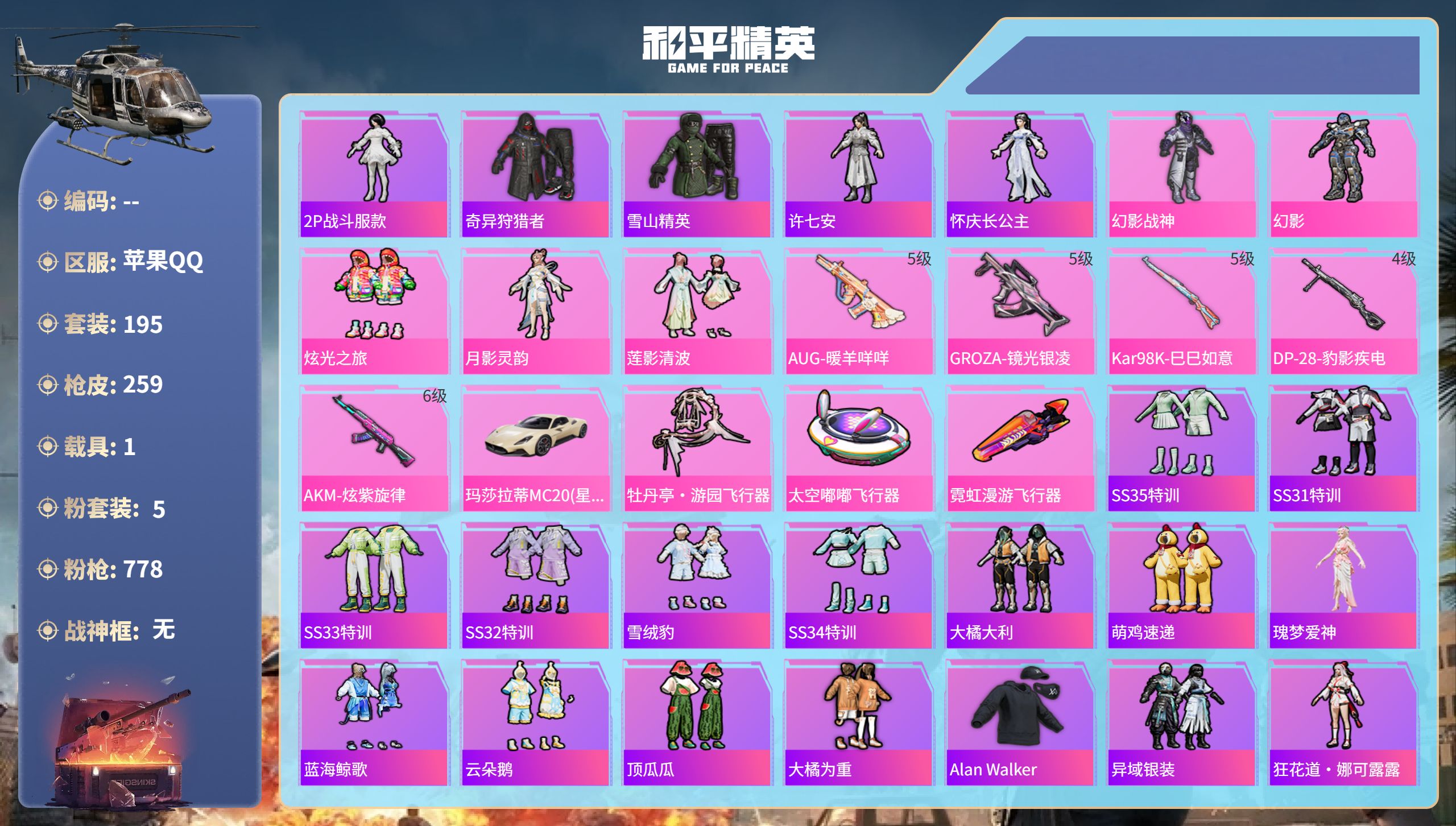 游戏区服:和平精英 / 苹果系统 / QQ帐号