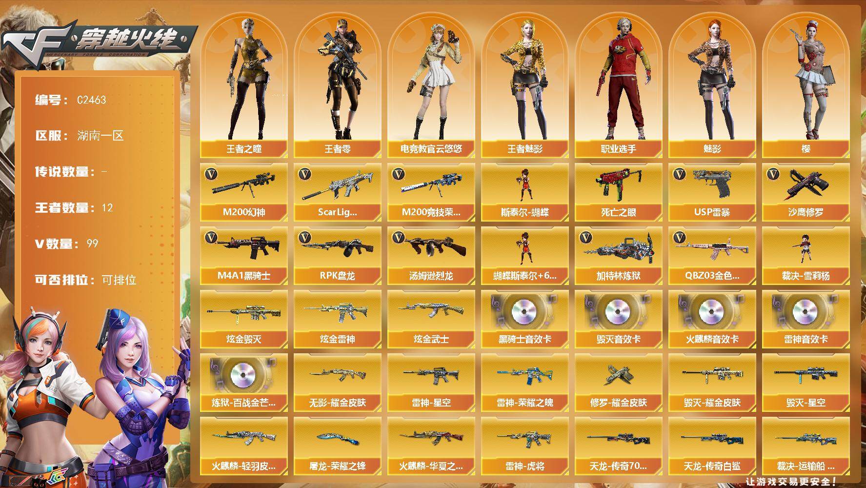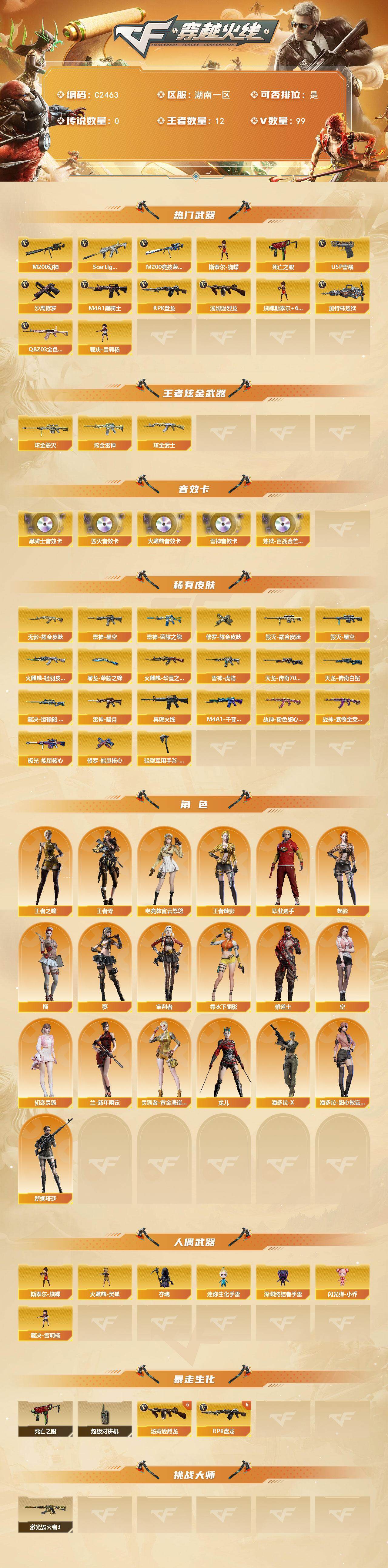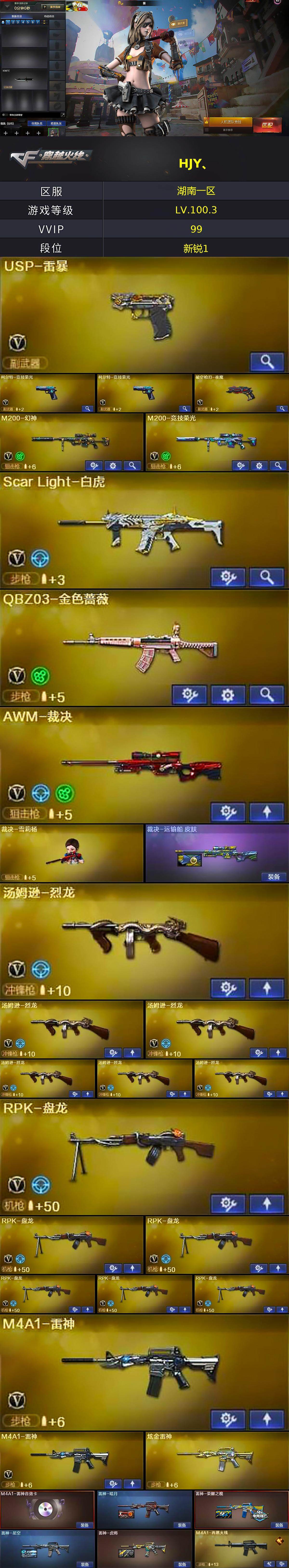 【66393】【66393】【C2463】湖南一区-99V-12王者-3炫金【双全号 QBZ03-金色蔷薇,Scar Light-白虎,M200-幻神,M20