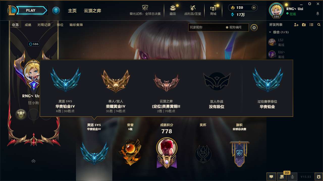 游戏区服:英雄联盟 / 电信 / 战争学院