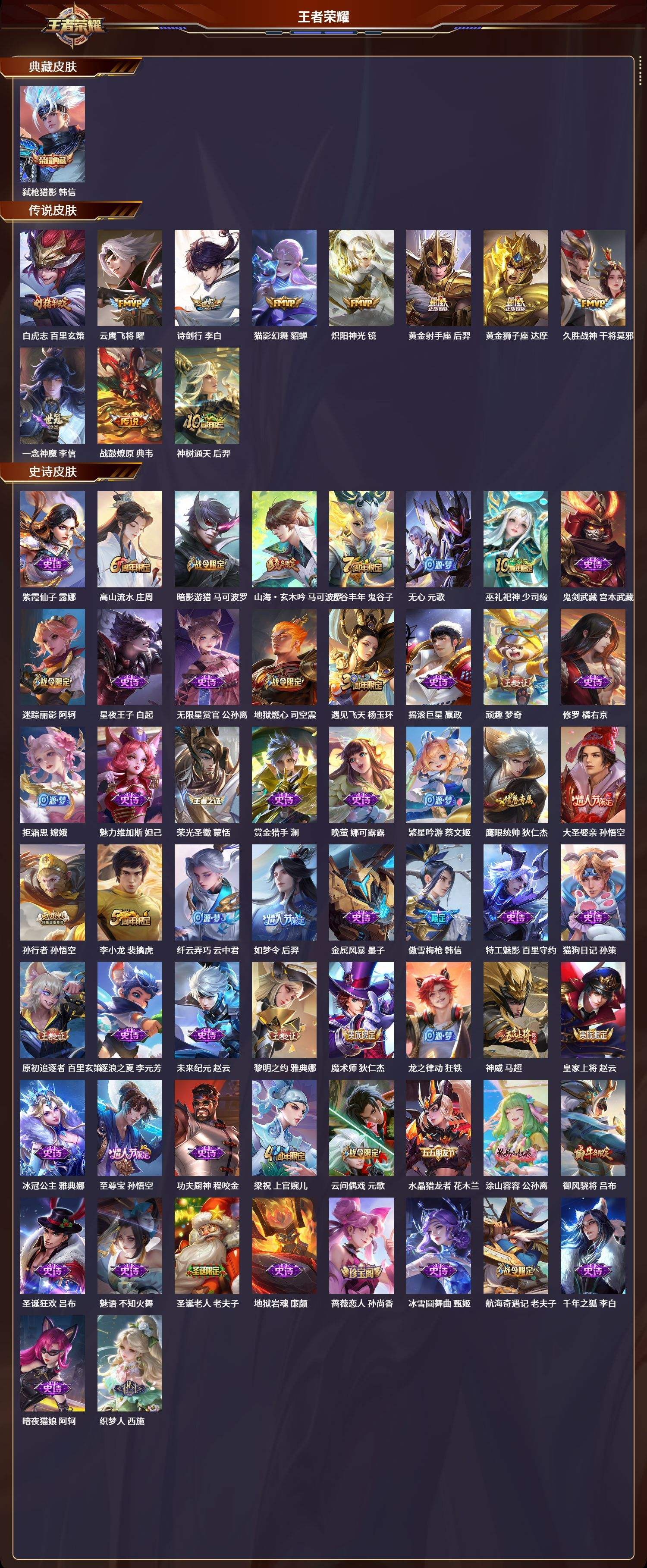 【66553】【不可二次】【微信(安卓)】黎明之约 乱世虎臣 后羿如梦令 暗影游猎 鹰眼统帅 水晶猎龙者 晚萤 原初探秘者 星夜王子 沙漠行僧 紫霞仙子 缤纷独角兽 万华元夜 修罗 千军破阵 特工魅影 诗剑行 醍醐杖 江河有灵 古海寻踪 丁香结 孙行者 荣光圣徽 魅力维加斯 战鼓燎原 久胜战神 云鹰飞将 弈星混沌棋 大漠名商 航海奇遇记 乘风破浪 遇见飞天 擒涛扼浪 白虎志 圣诞狂欢 驱傩正仪