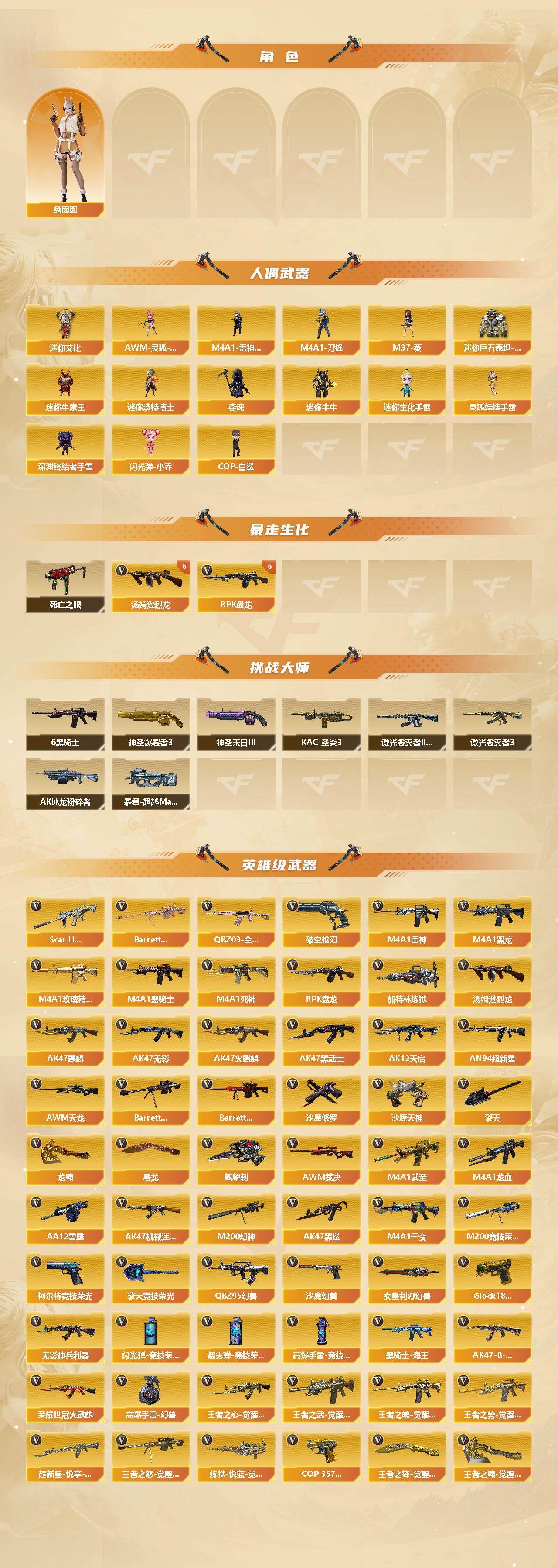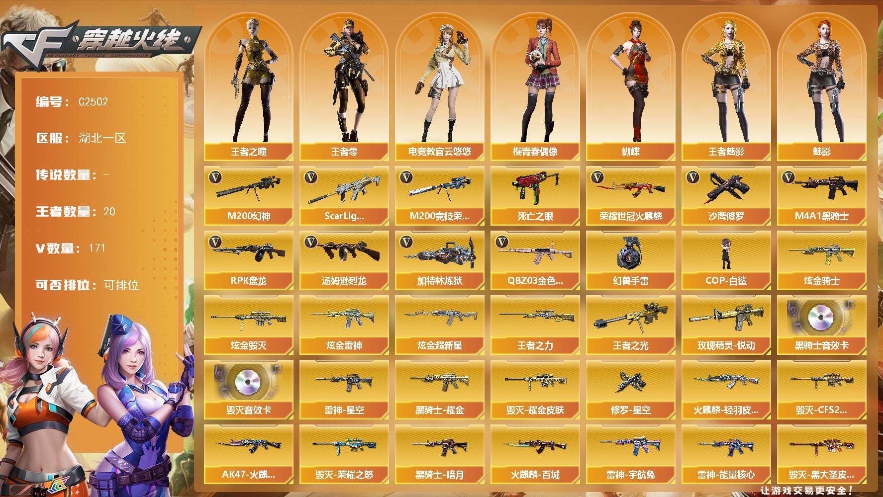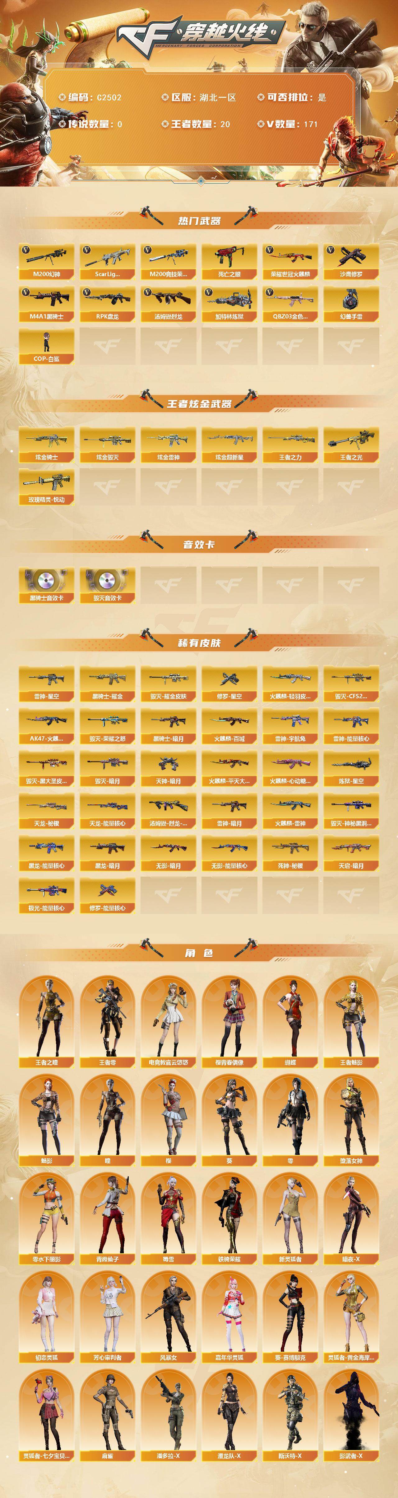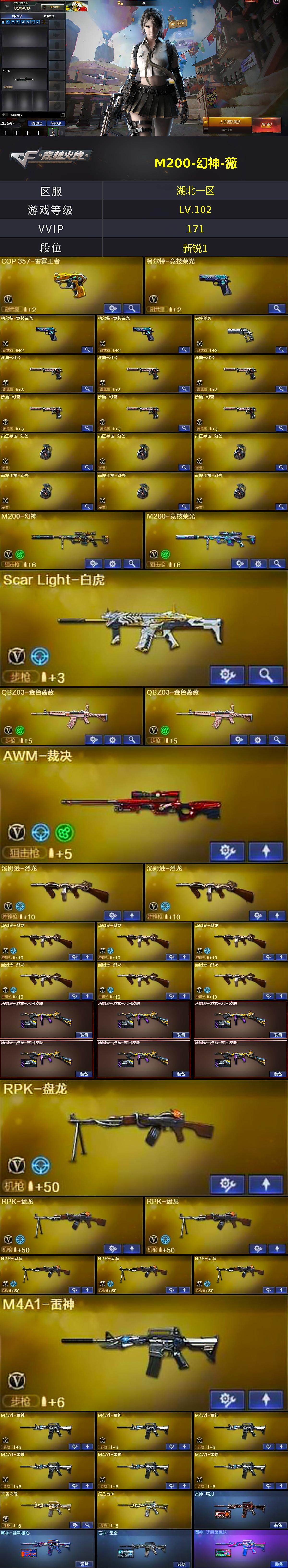 【66621】【66621】【C2502】湖北一区-171V-20王者-6炫金【双全号 QBZ03-金色蔷薇*2,Scar Light-白虎,M200-幻神,