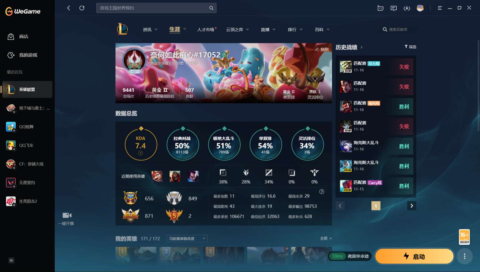 游戏区服:英雄联盟 / 网通 / 弗雷尔卓德
