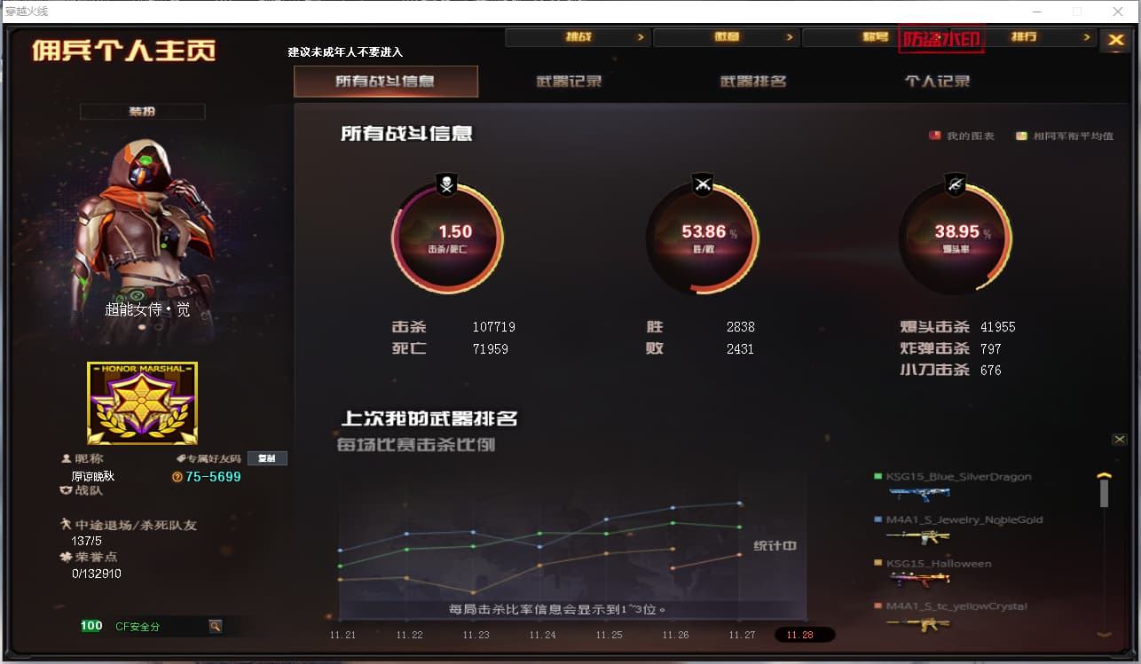 游戏区服:穿越火线 / 北部战区 / 吉林一区互 通