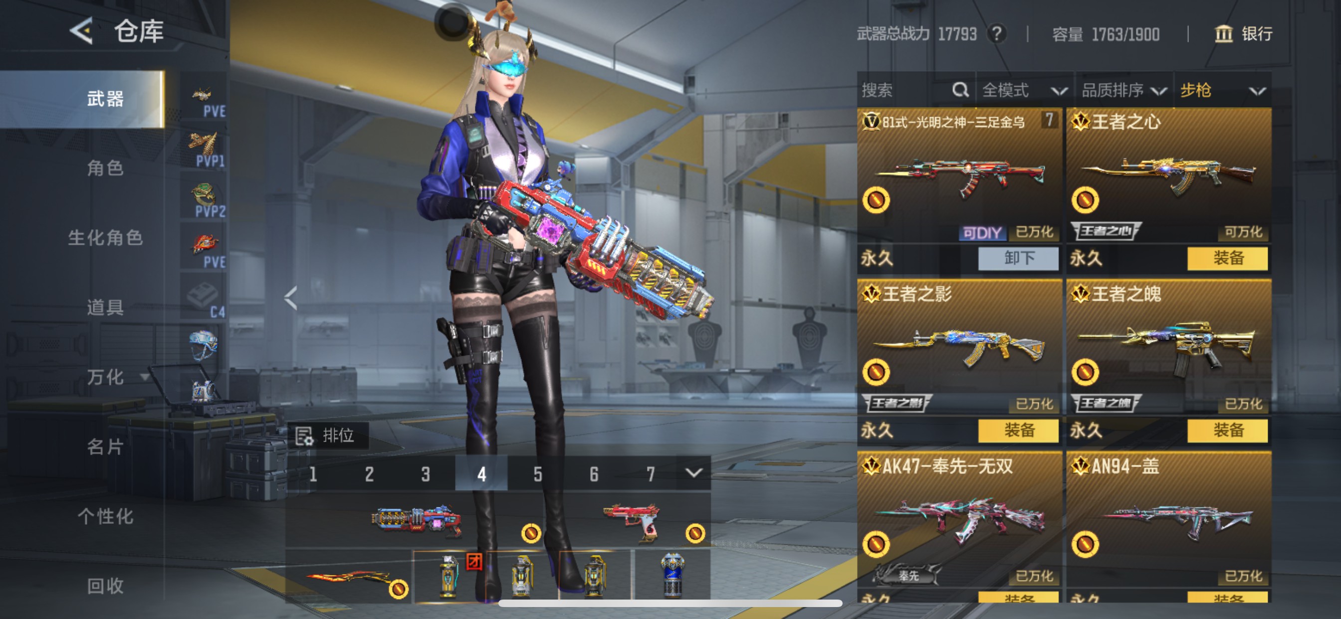 HG671140/【竞技挑战毕业号!三国轮椅81瑜+奉先带无双+神狙王幻+AWM游骑兵+慈+COP黑铁+王魄+辅瞄游骑兵+挑战擎天柱威震天+挑战增伤45%+生化王狱+王蝶+霸王龙+生化增伤90%+2套王者手雷套+配置页满雷套+3万钻石+88骰子+28钥匙】可二次可转区/V7-300V-20王者/81式-瑜AK47-奉先+无双王者幻神王者之魄SPAS12-变形...