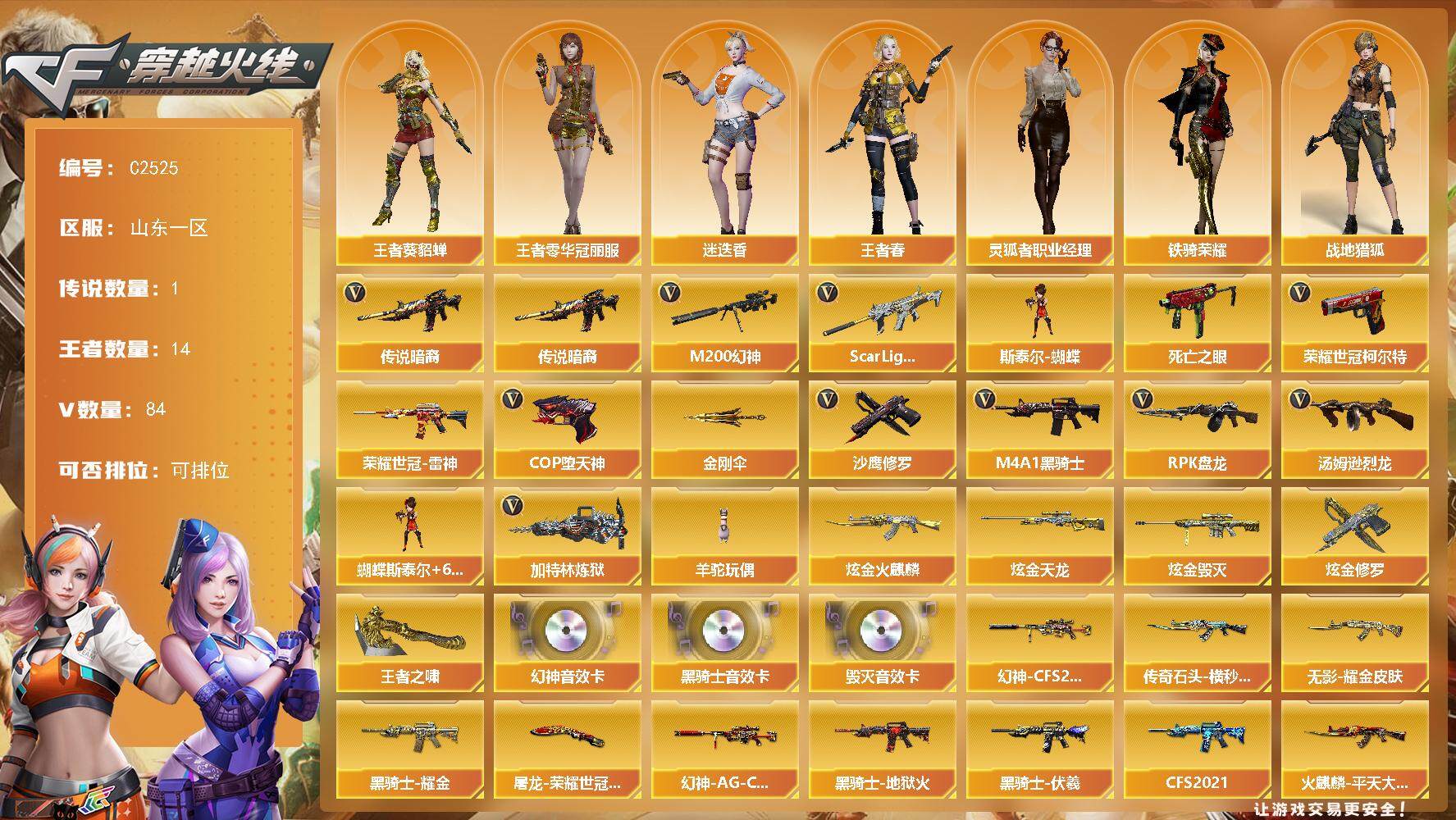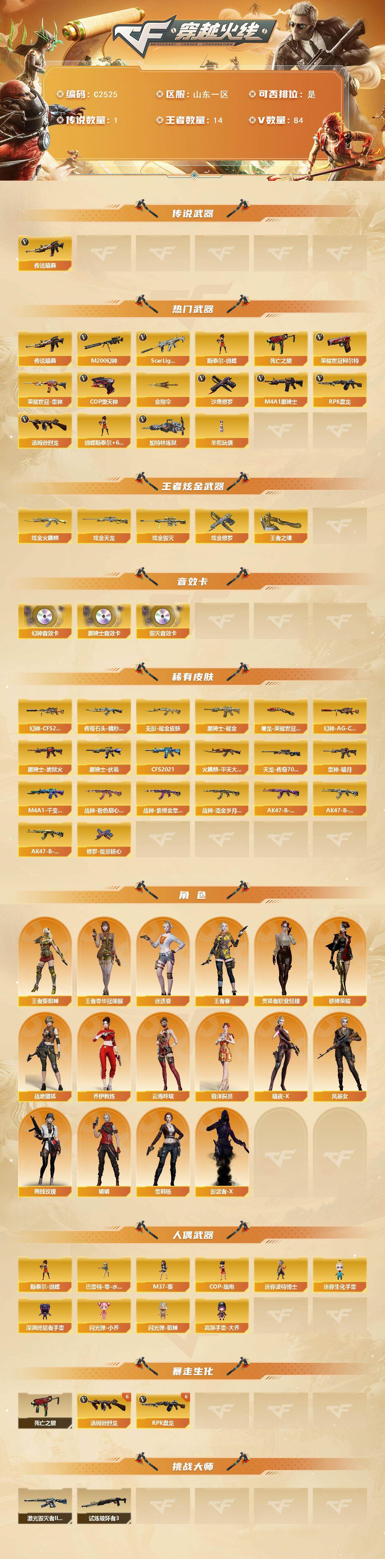 【66786】【66786】[14071670]山东一区-84V-14王者-4炫金【双全号 传说暗裔,Scar Light-白虎,M200-幻神,死亡之眼,荣