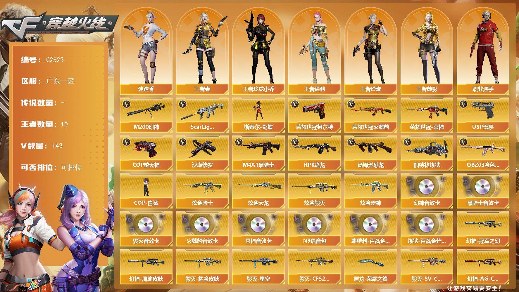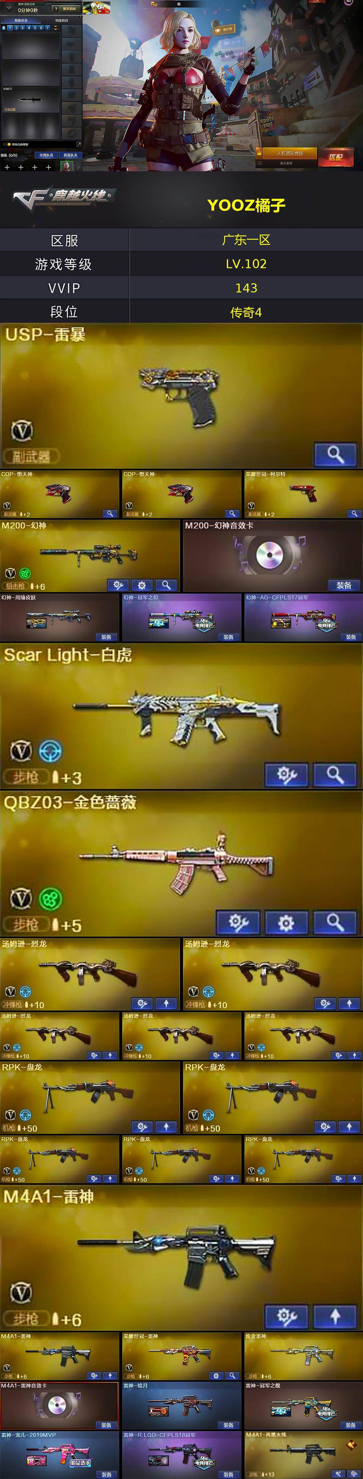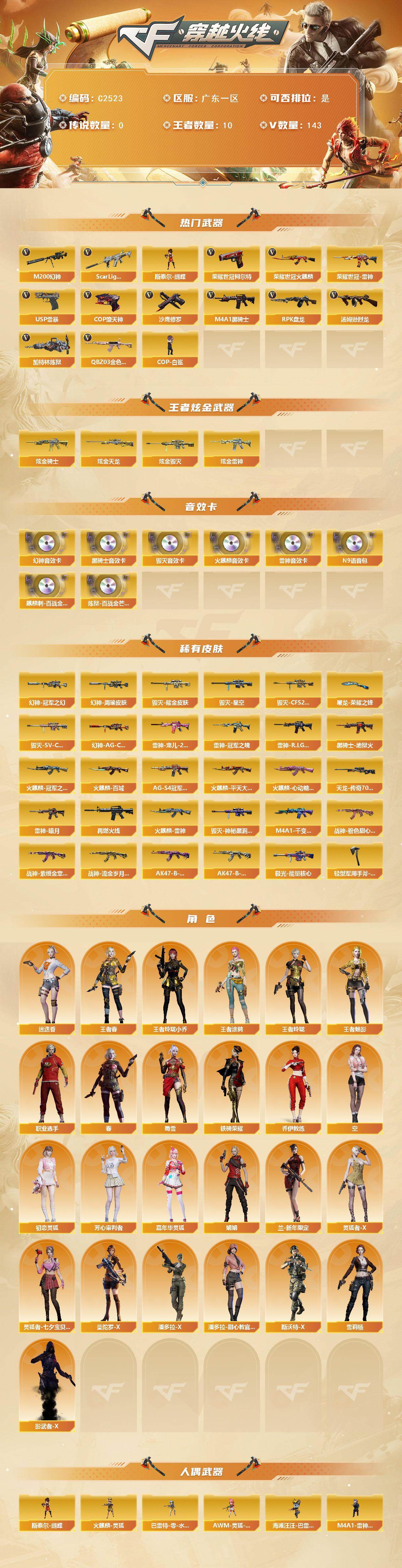 【66800】【66800】【C2523】广东一区-143V-10王者-7炫金【双全号 :QBZ03-金色蔷薇,Scar Light-白虎,M200-幻神,荣