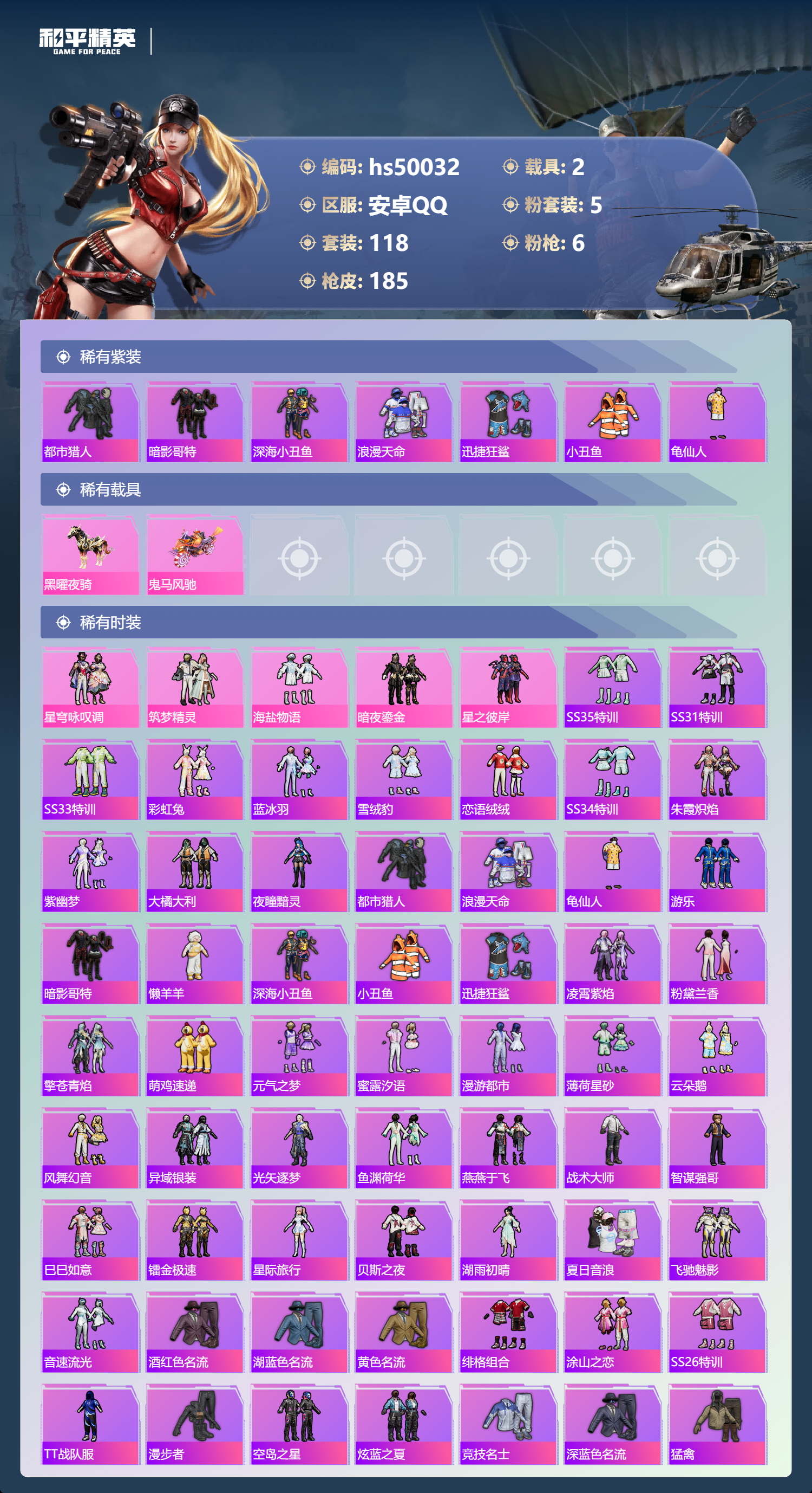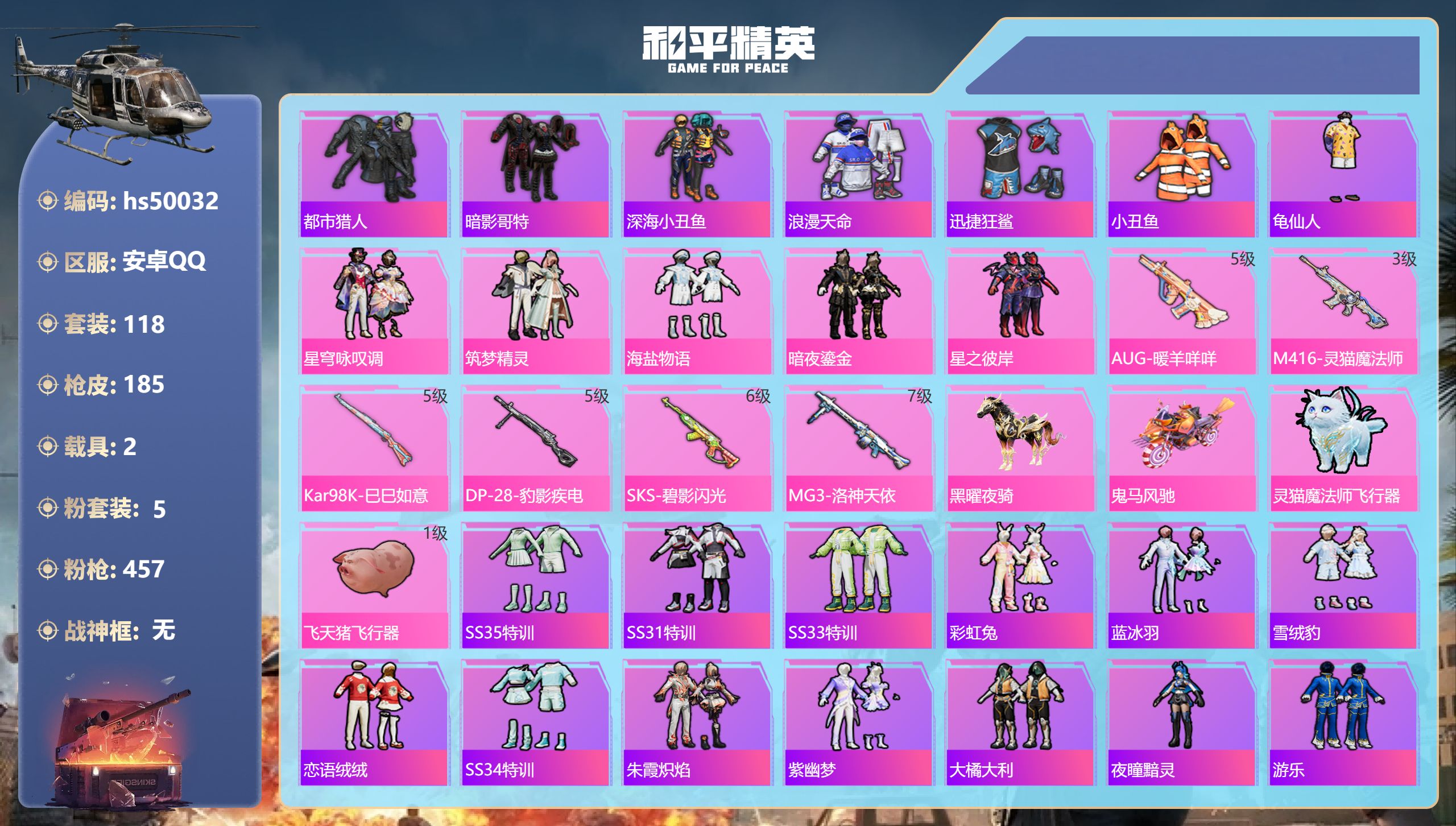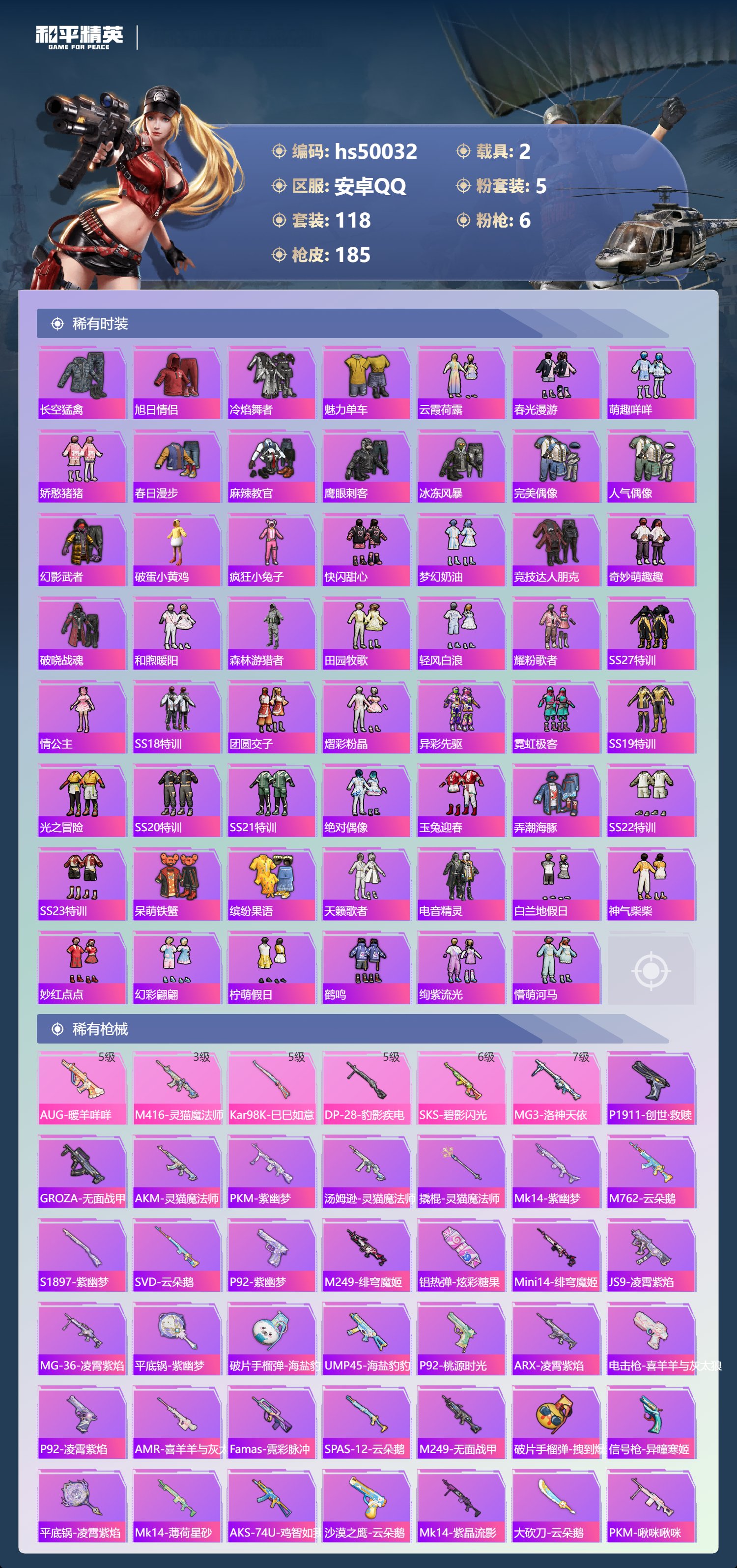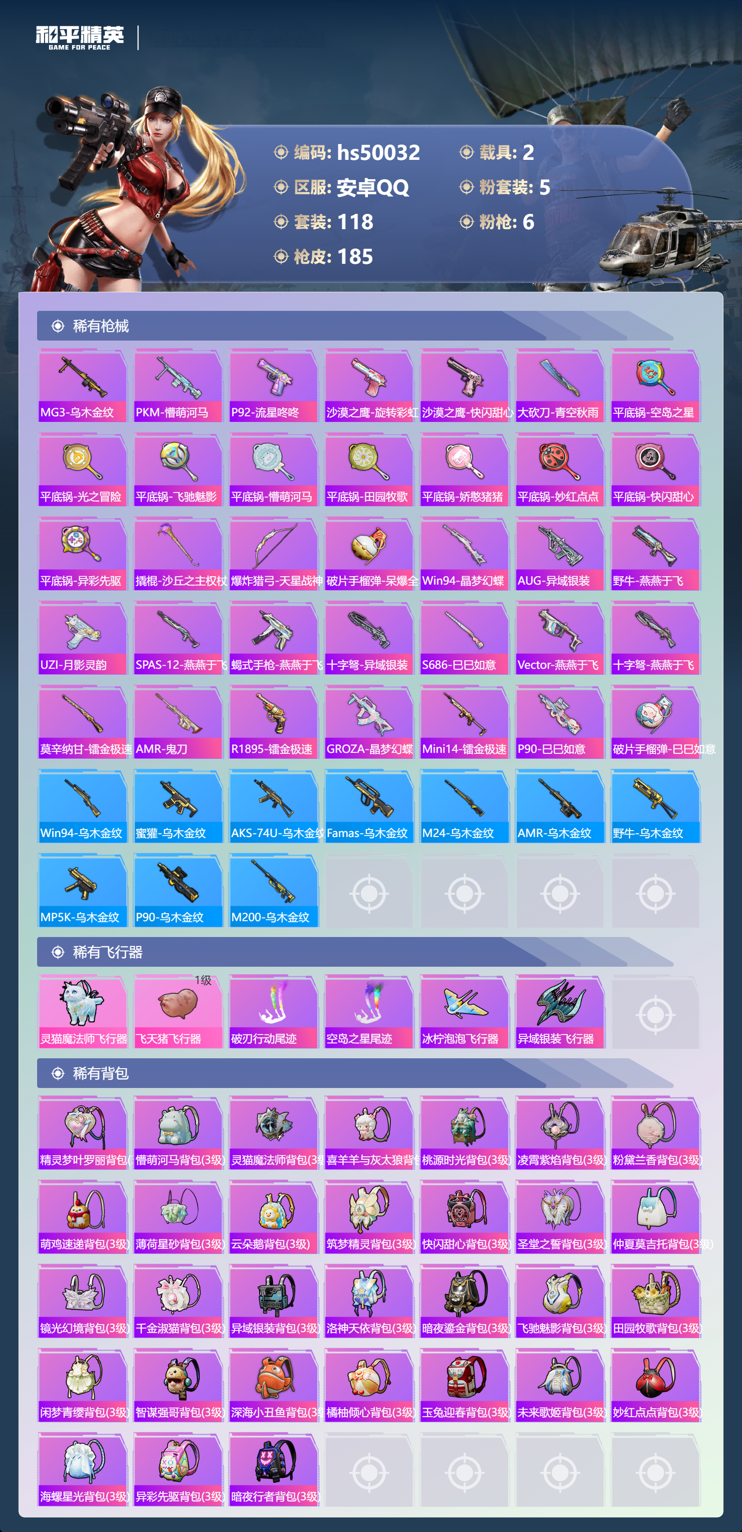 游戏区服:和平精英 / 安卓系统 / QQ账号