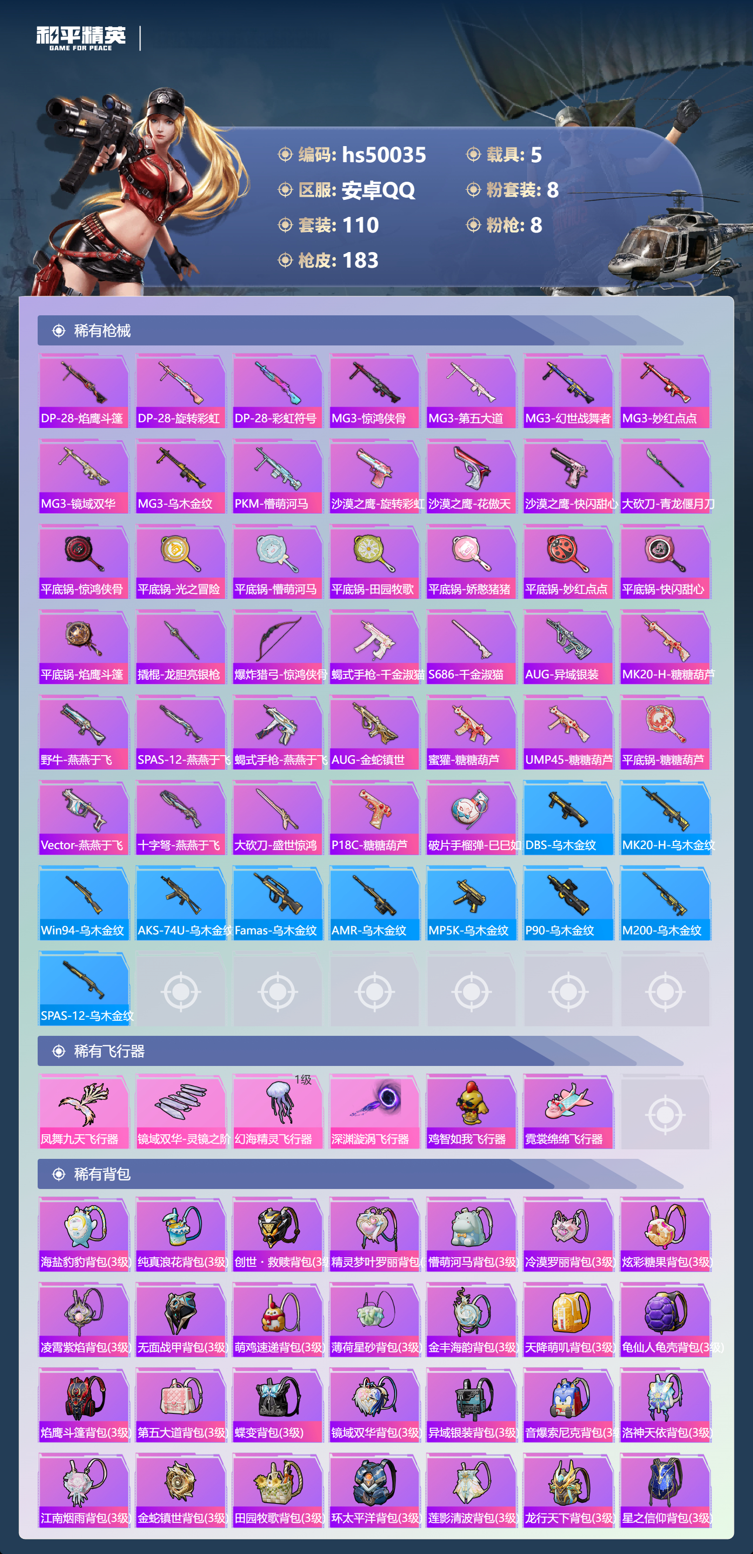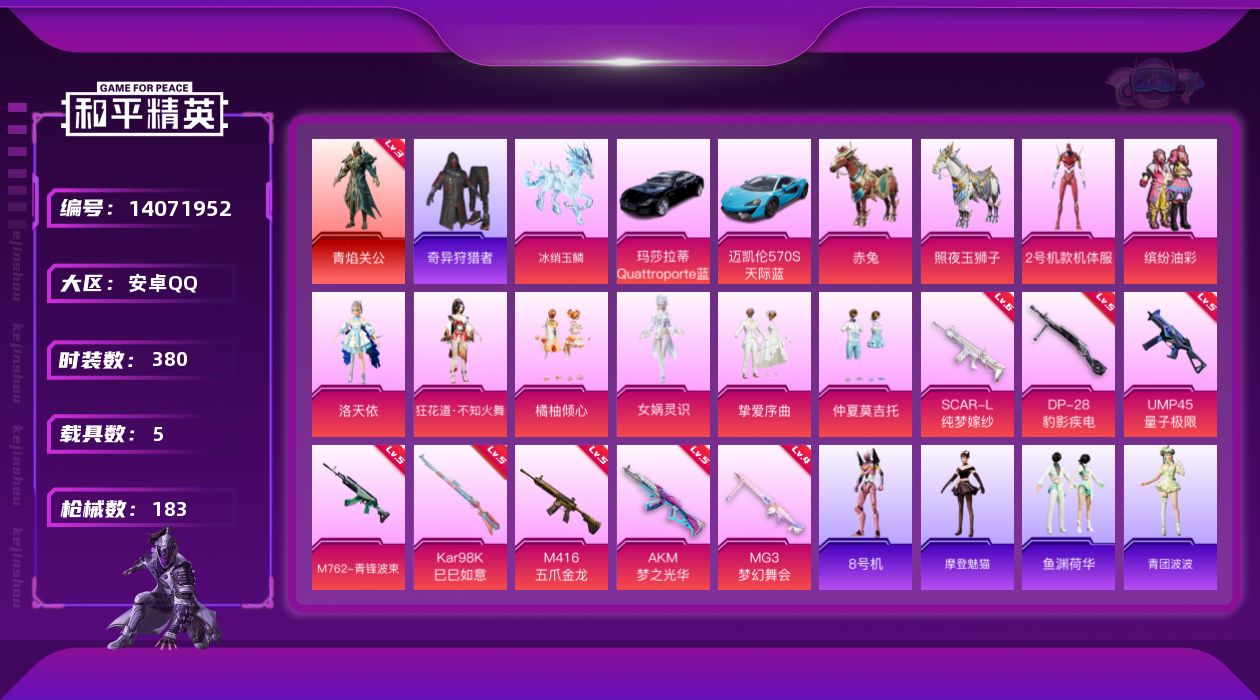 【66857】【可二次】【安卓QQ】龟仙人 赤兔 M762-青锋波束 M416-五爪金龙 萌兔起飞 奇异狩猎者 洛天依 青焰关公 迈凯伦570S 天际蓝 UMP45-量子极限 AKM-梦之光华 幻海精灵飞行器 缤纷油彩 SCAR-L-纯梦嫁纱 照夜玉狮子 红螳螂 MG3-梦幻舞会 团圆交子