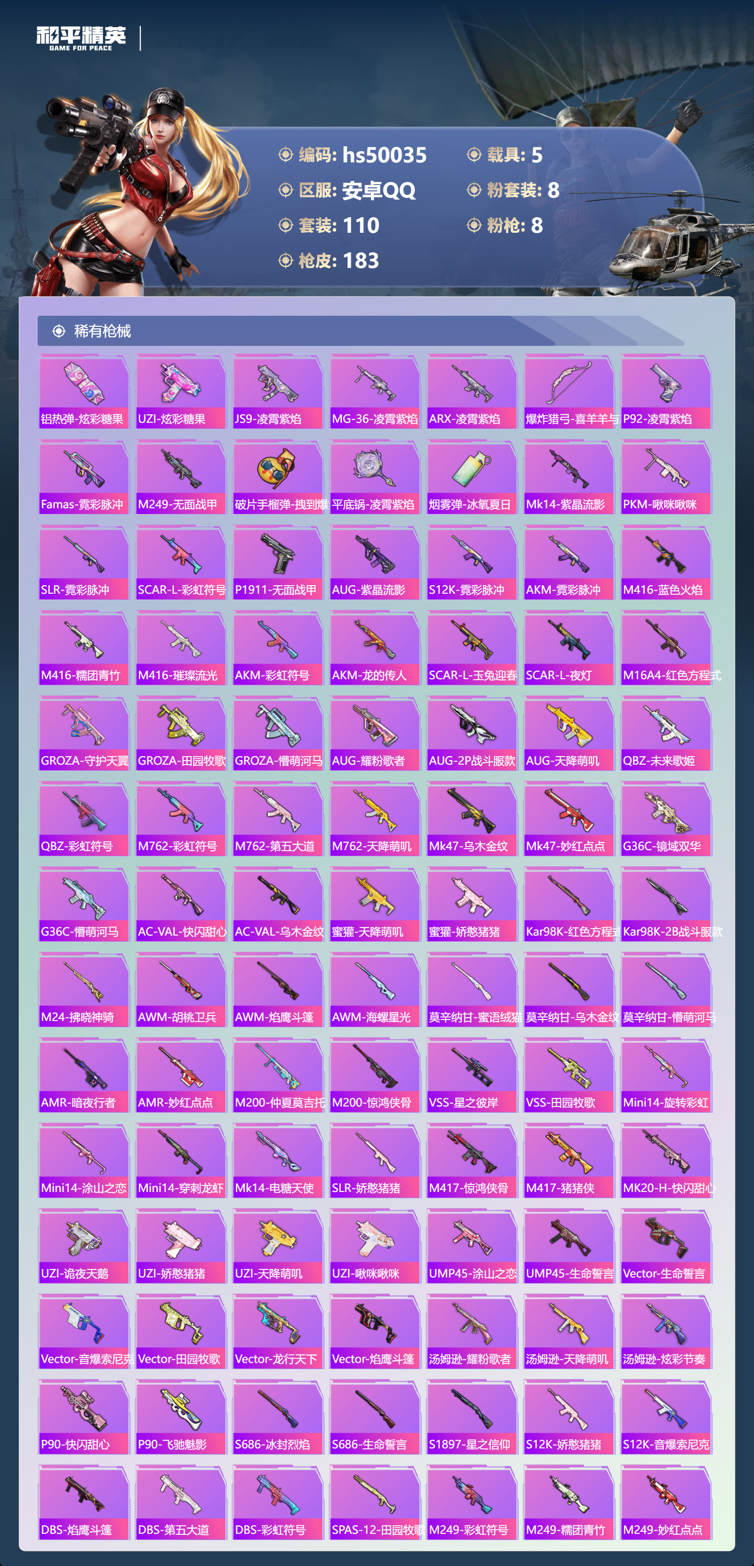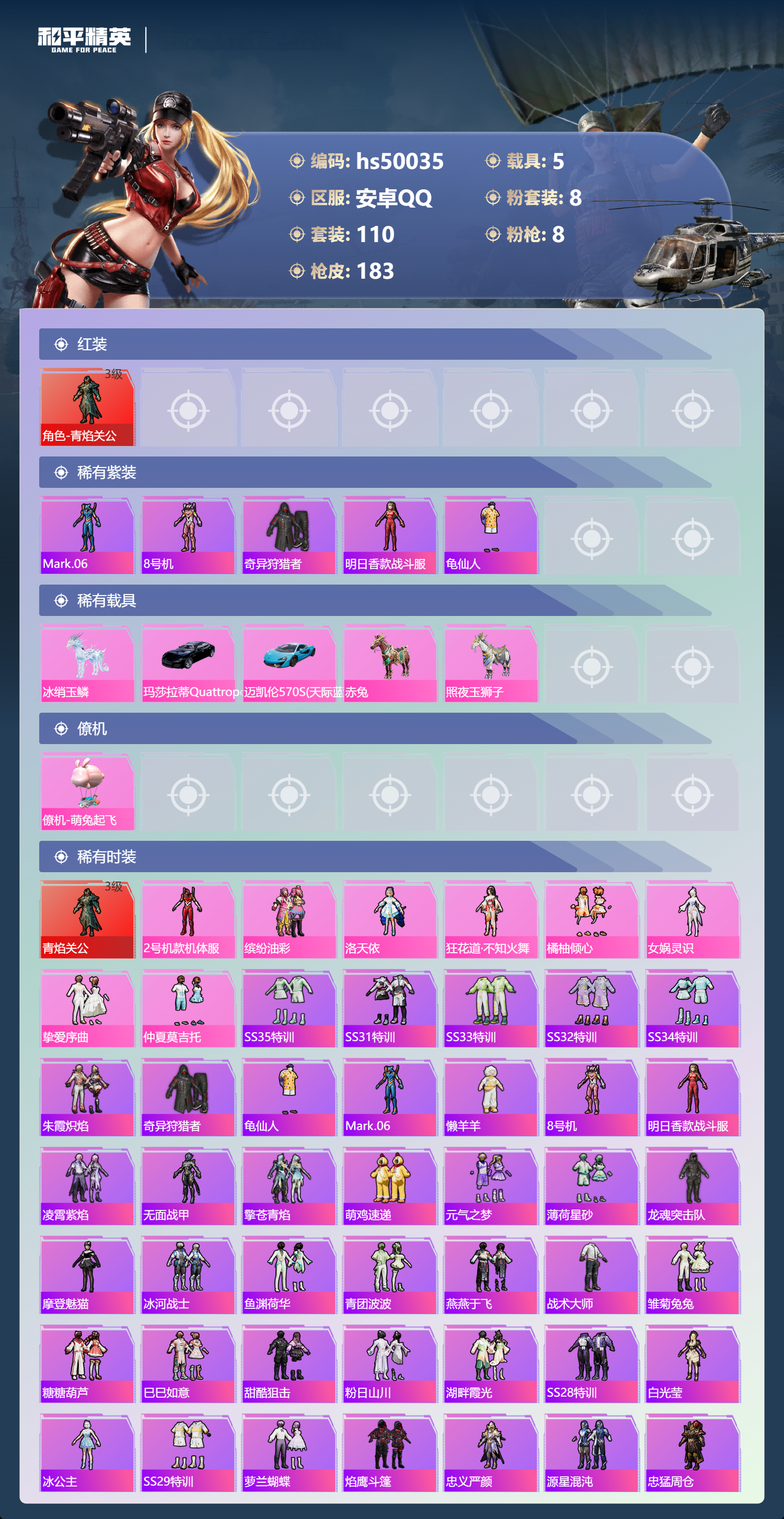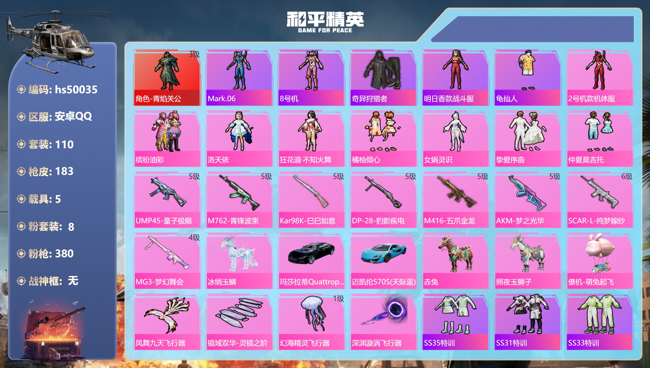 游戏区服:和平精英 / 安卓系统 / QQ账号