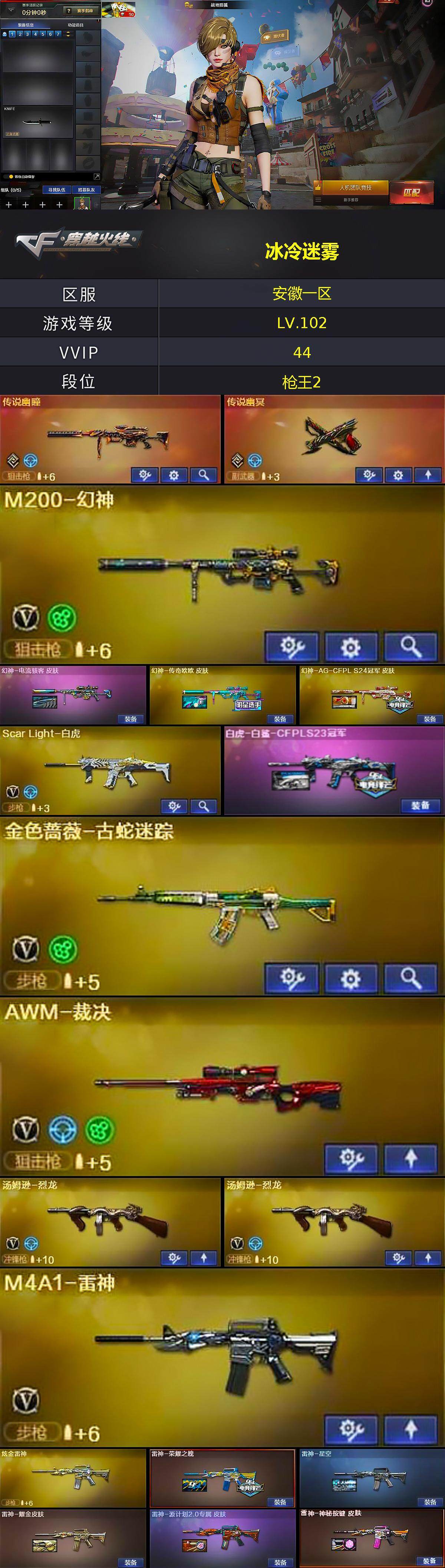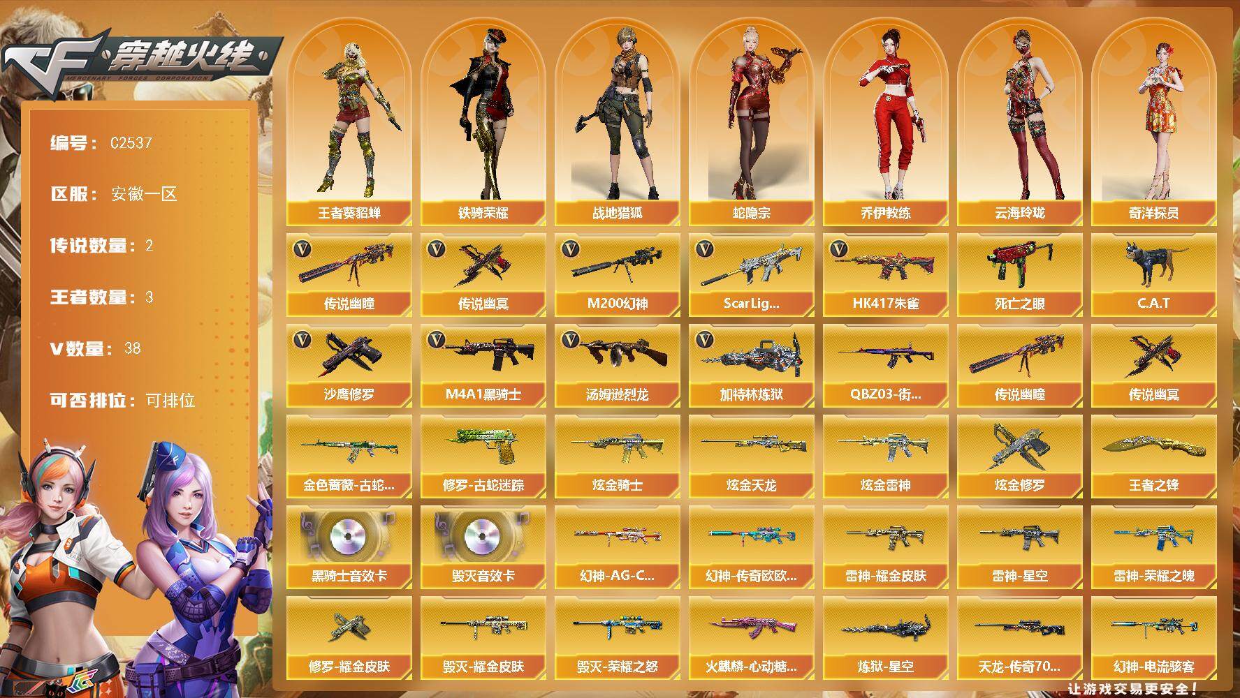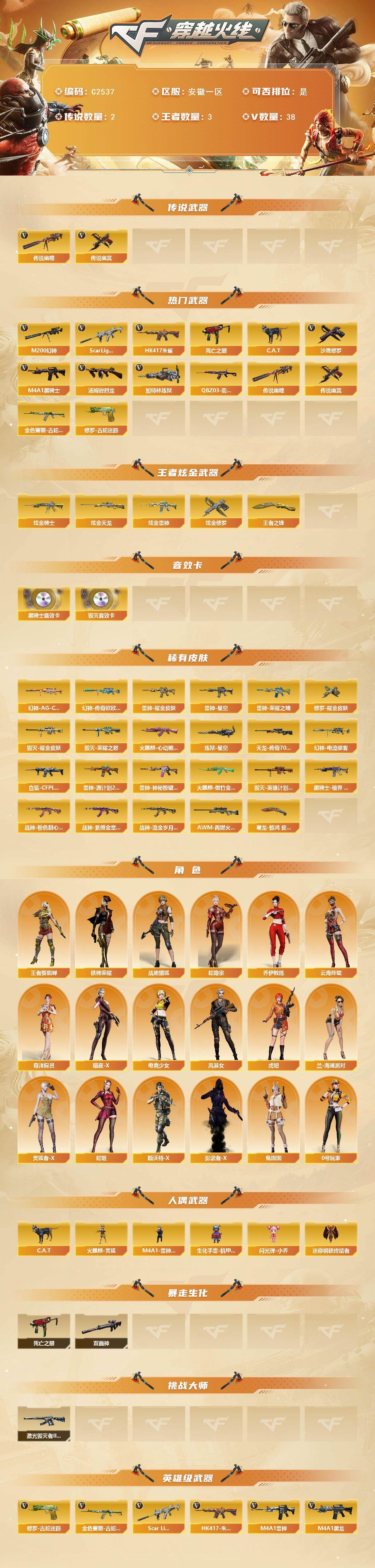 【66882】【66882】【C2537】安徽一区-38V-3王者-4炫金【双全号 传说幽瞳,传说幽冥,Scar Light-白虎,HK417-朱雀,M200