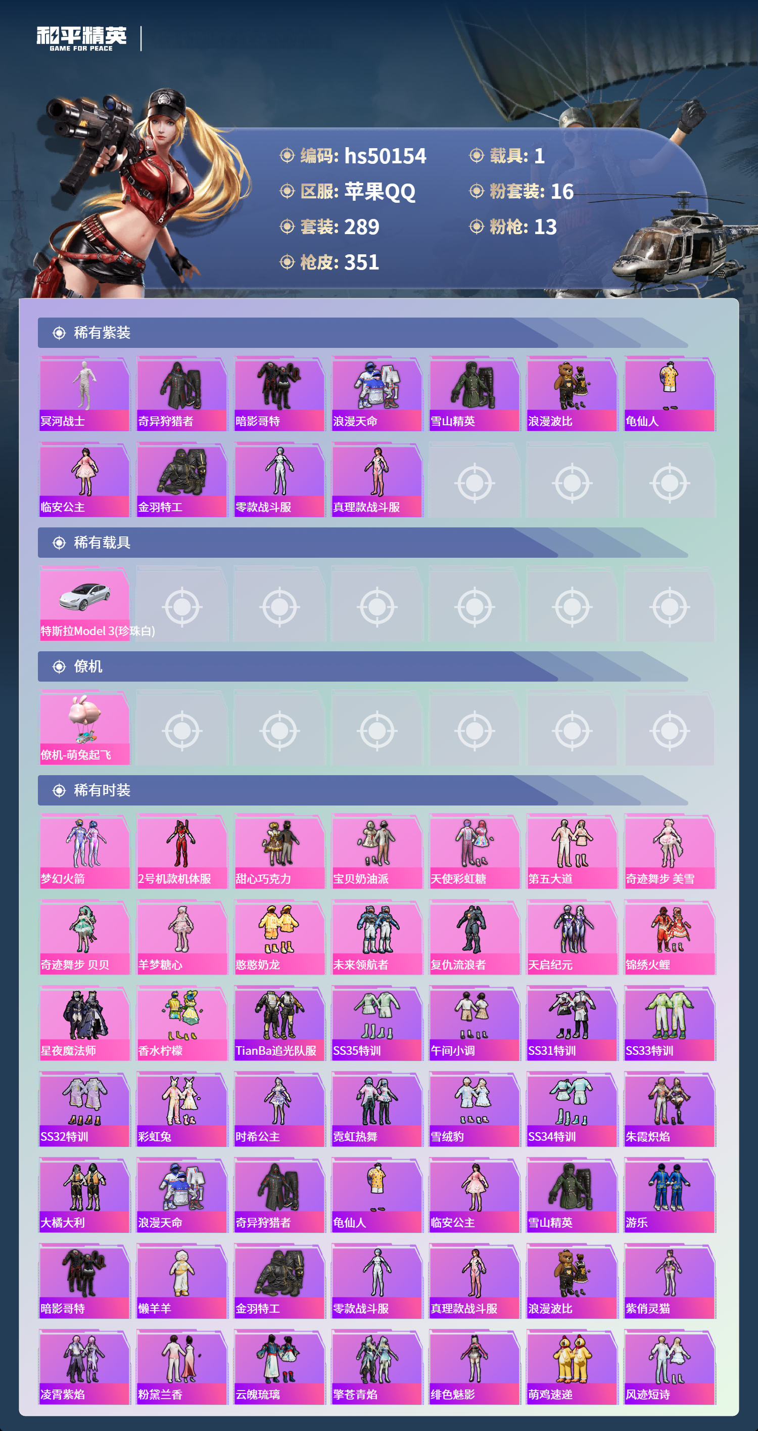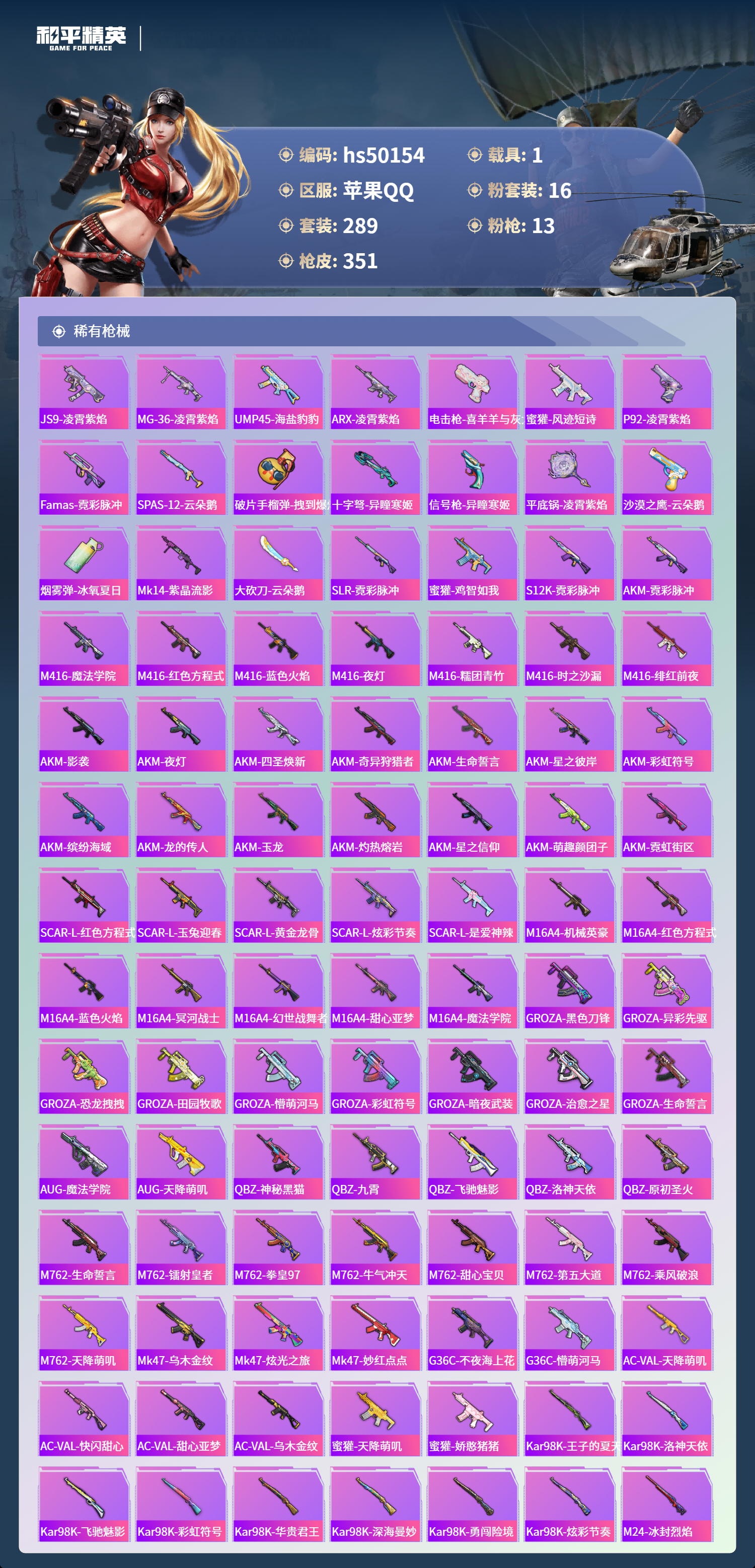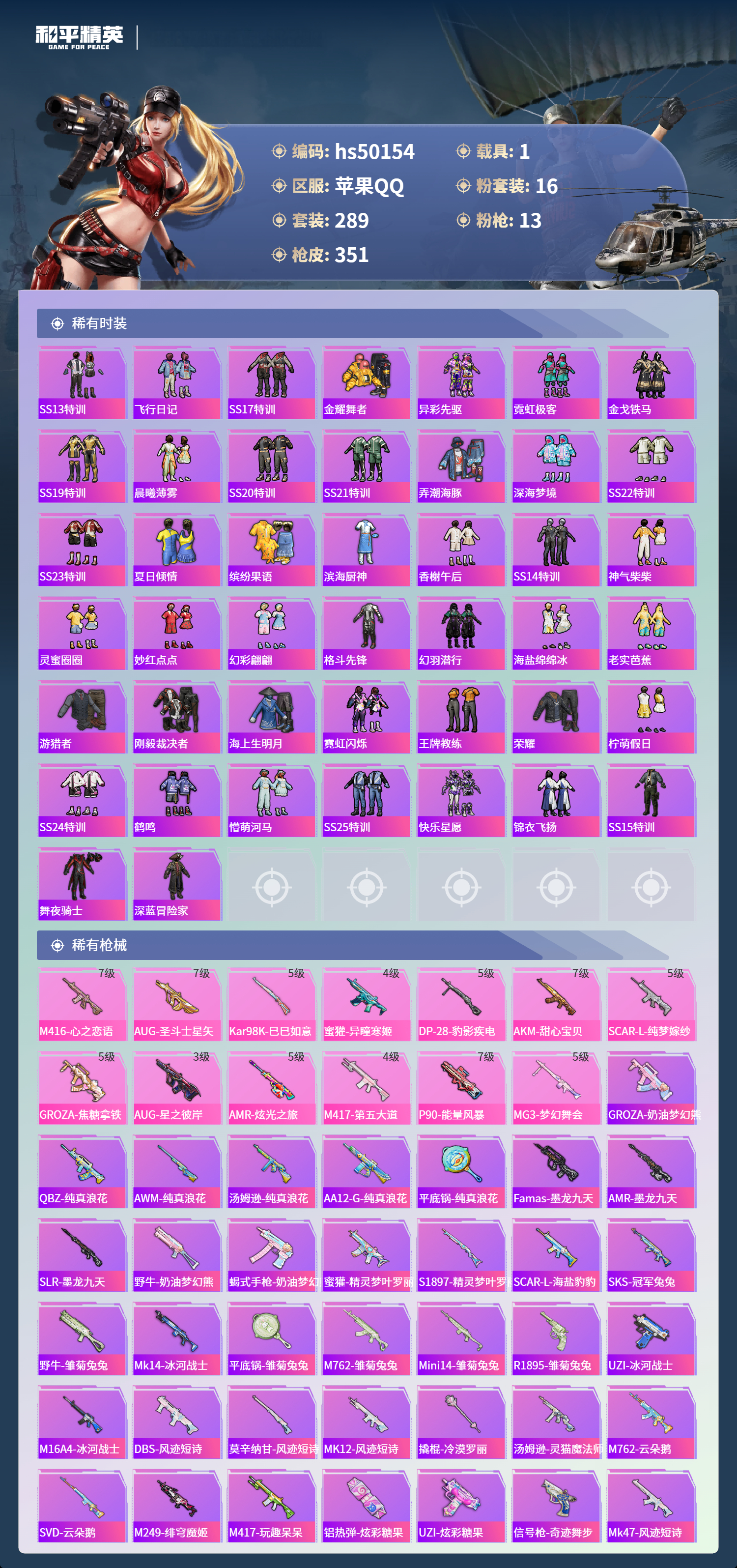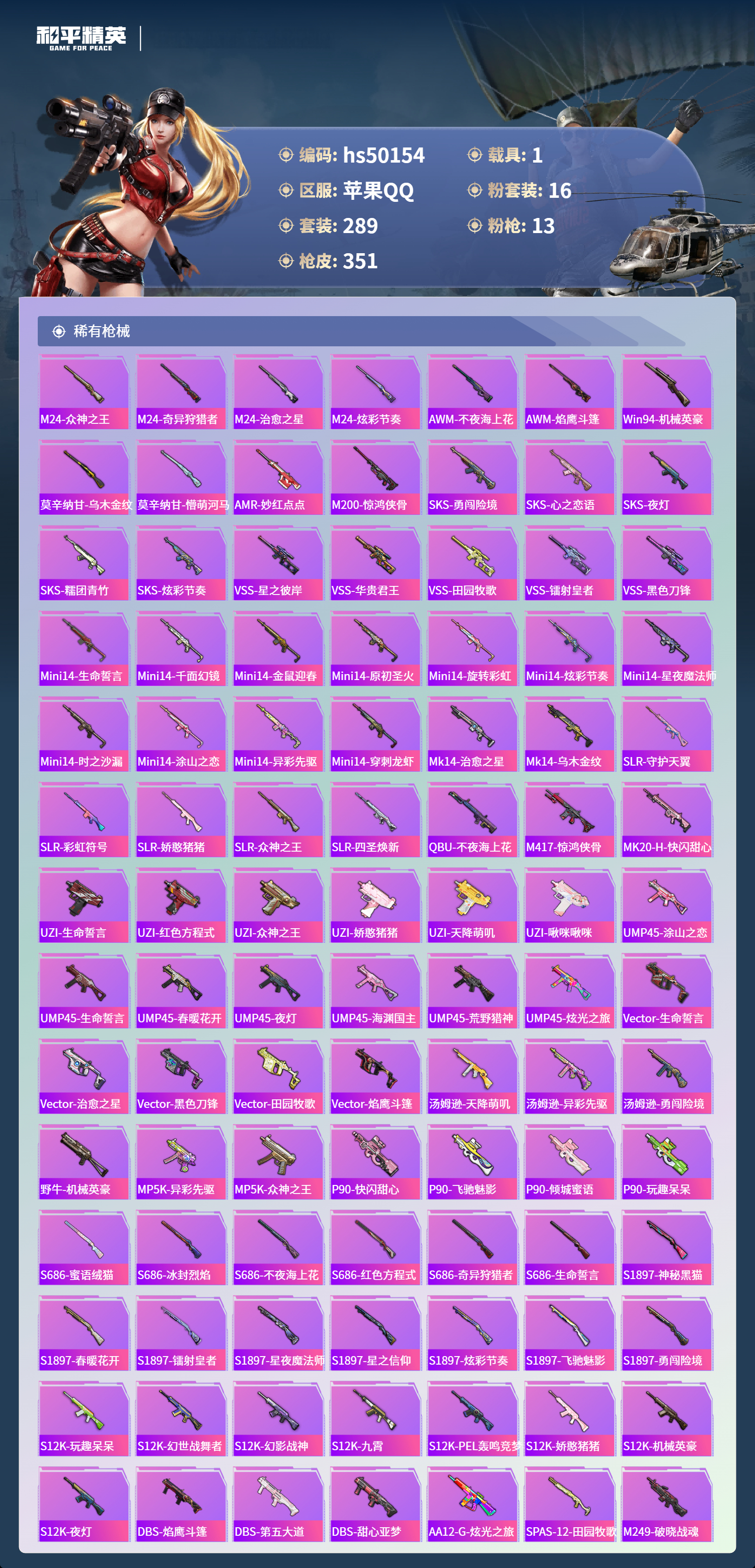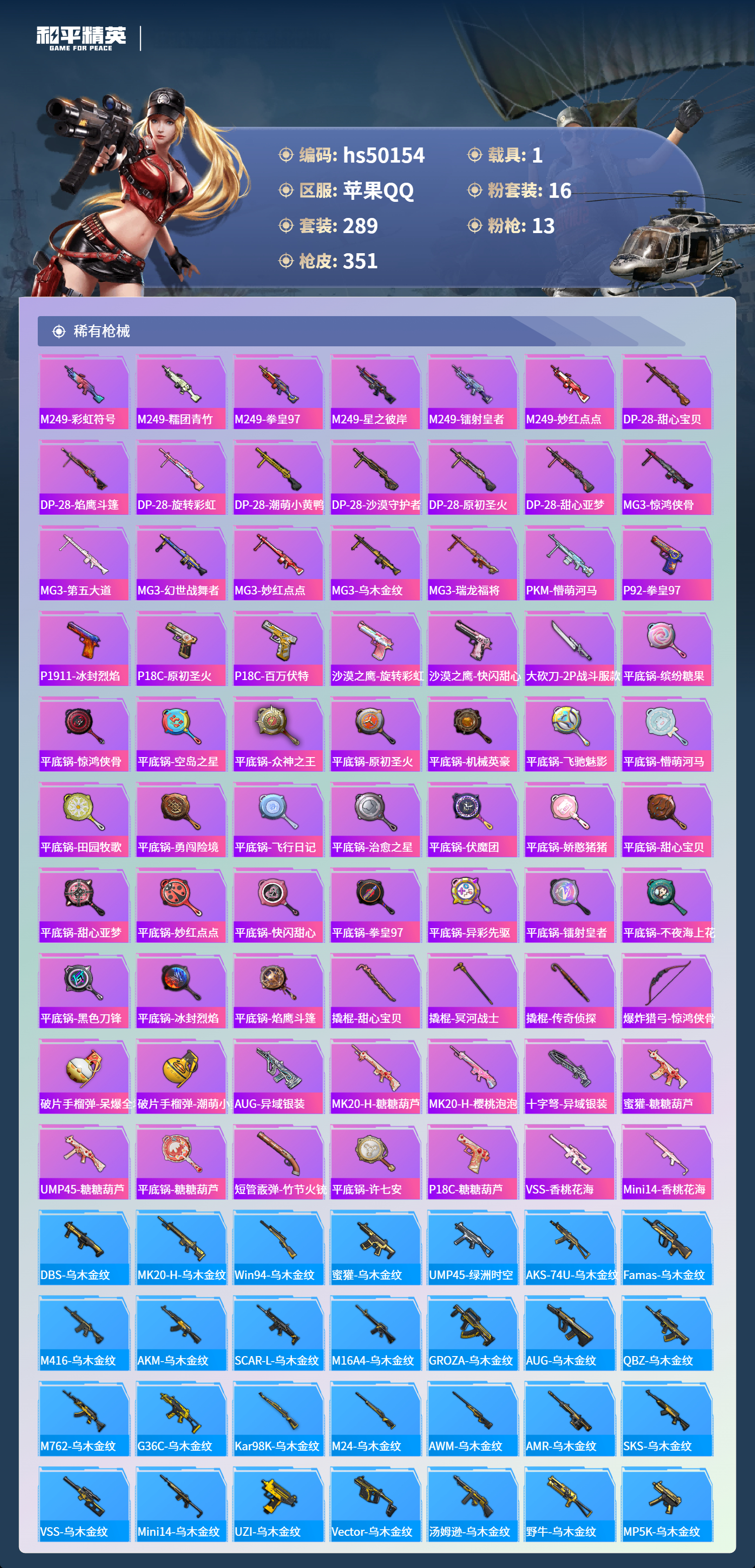 【67040】【不可二次】【苹果QQ】龟仙人 大橘为重 拂晓神骑飞行器 韶华初心 M416-心之恋语 浪漫波比 AUG-星之彼岸 MG3-梦幻舞会 AKM-甜心宝贝 纯白誓言 AKM-奇异狩猎者 特斯拉3白色 潮萌小黄鸭 黑色刀锋 天启纪元 M417射手步枪 狂沙舞者 金羽特工 香水柠檬 白月香洋装 星夜魔法师飞行翼 M417-第五大道 红螳螂 木乃伊 S686-奇异狩猎者 萌兔起飞 粉甜马卡龙