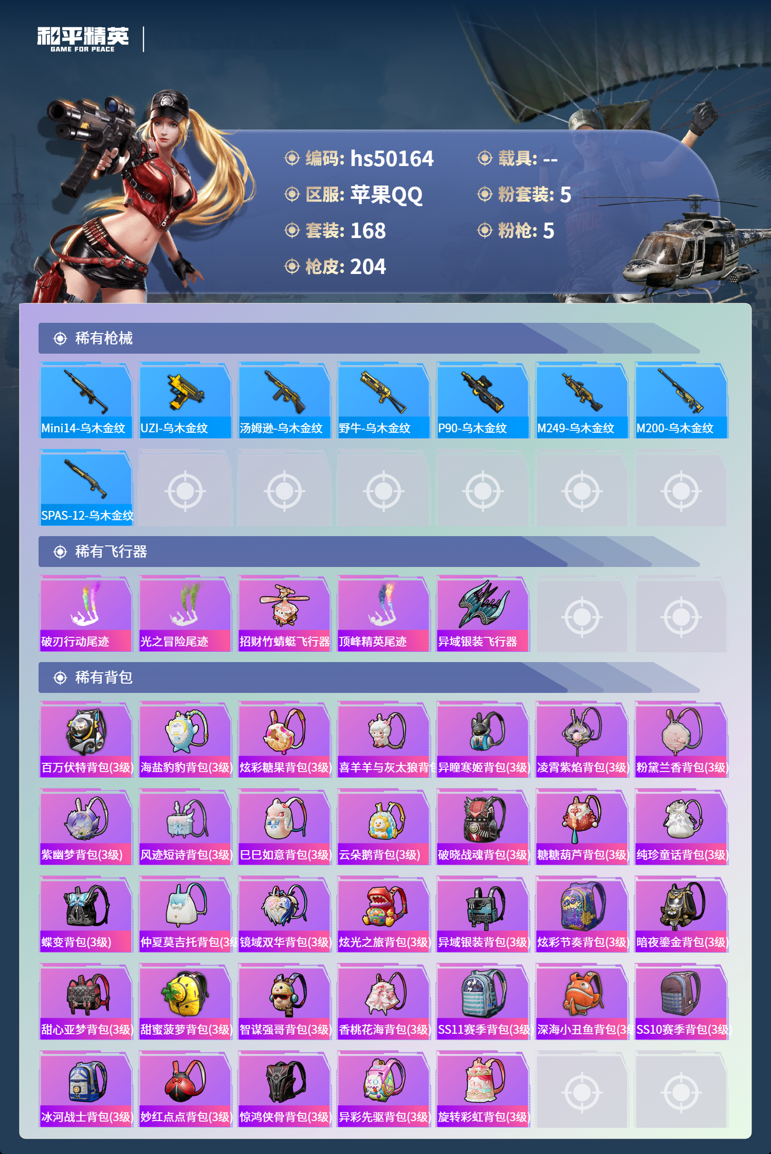 游戏区服:和平精英 / 苹果系统 / QQ帐号