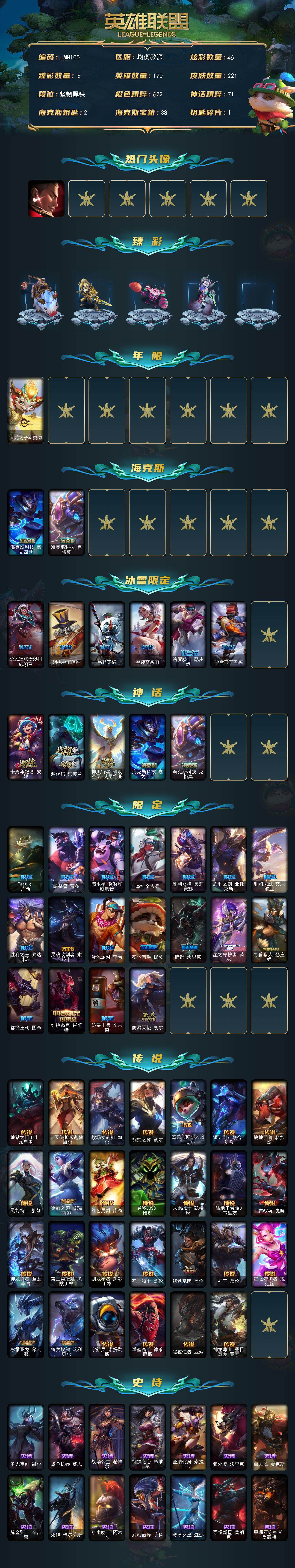 【171879】【LMN100】170英雄/221皮肤/5神话/25限定/6臻彩/46炫彩/27传说/55史诗/黑铁/觅心游侠卢锡安/无畏骑士瑟庄妮赤子初心/赵云子龙炫金将军/可爱可爱粉红红布里茨/魔女阿卡丽虚荣/净雪之月莫甘娜冬虹/红莲之刃锐雯/天龙之子斯莫德/海克斯科技嘉文四世/海克斯科技克格莫/圣诞狂欢努努和威朗普/胡桃夹子萨科/雪默丁格/雪装奈德丽/魄罗骑士瑟庄妮/冰雪节辛吉德/十周年纪