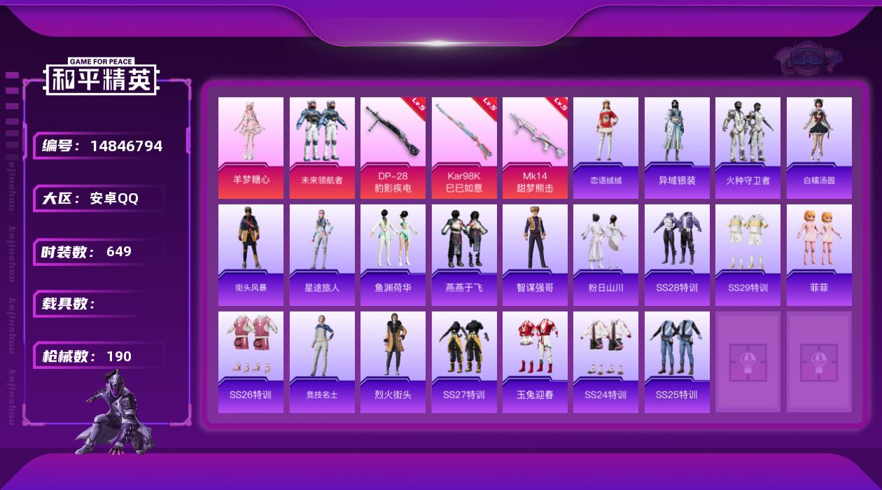游戏区服:和平精英 / 安卓系统 / QQ账号