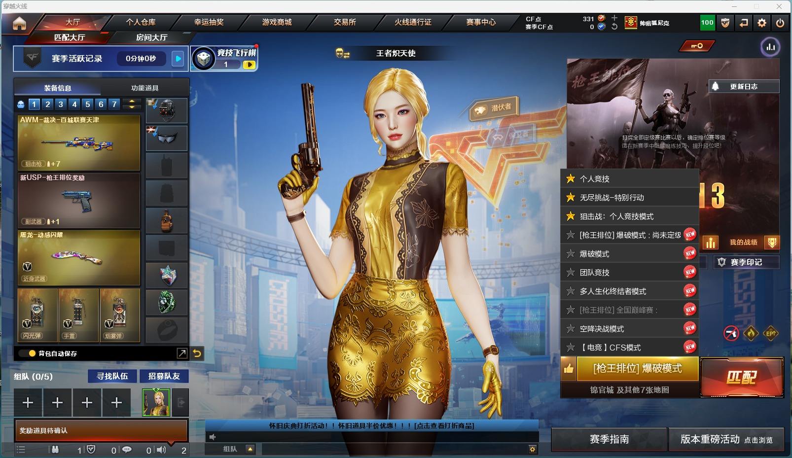 游戏区服:穿越火线 / 北部战区 / 黑龙江一区互 通