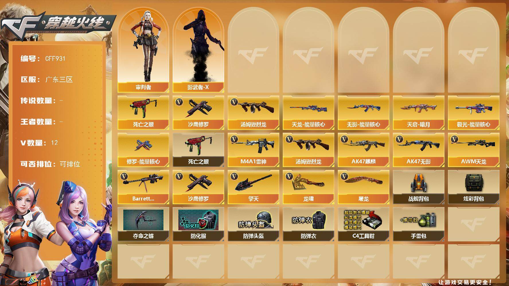 【180531】【180531】【CFF931】11V/100级/元帅/1英雄/死亡之眼/汤姆逊-烈龙/沙鹰-修罗/无影-能量核心/天启-暗月/天龙-能量核心