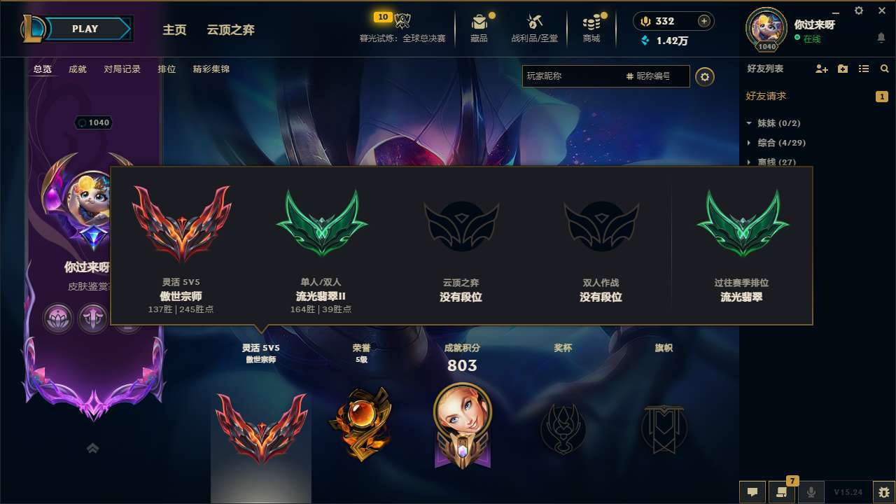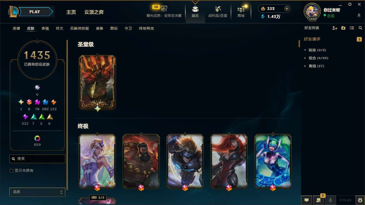 【242545】[15237801]t32394【艾欧尼亚】萨恩乌祖尔莫德凯撒 三色龙瞎 1435皮肤 971炫彩 67臻彩 78神话/282限定/122传说/172英雄 账号等级:1040 单双排段位:翡翠 【重要头像】爱意绵绵 爱情之歌 心型钥匙 觅心游侠卢锡安 雪花 银河魔装机神安妮 两仪无极 萨勒芬妮超级巨星 萨勒芬妮独立音乐人 春晖神女拉克丝 我麦是开的么 万圣节卡特琳娜 青花瓷拉克丝