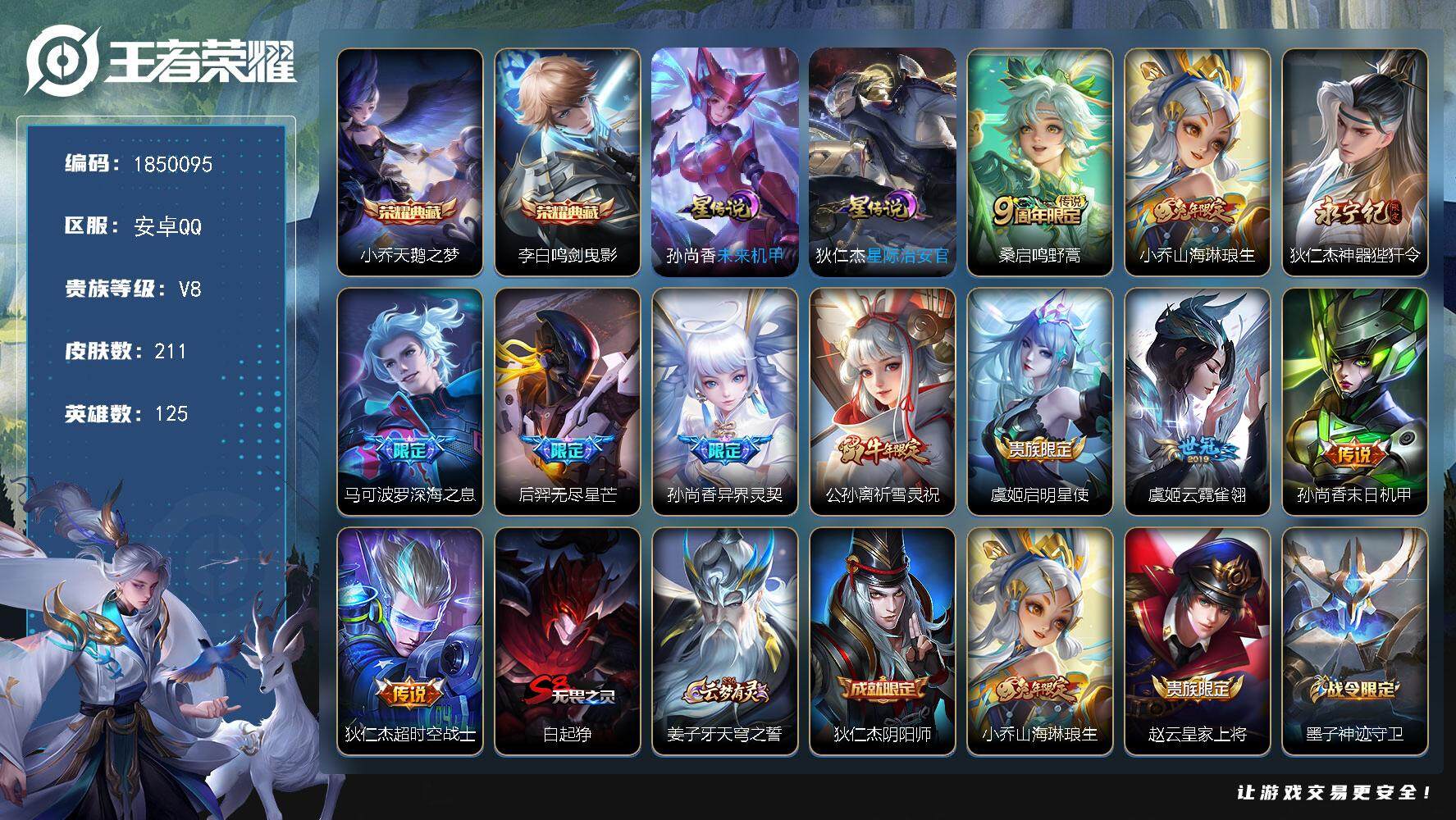 【249209】【可二次】【QQ(安卓)】御旌 弈星混沌棋 大漠名商 未来机甲 无尽星芒 遇见飞天 原初探秘者 擒涛扼浪 祈雪灵祝 沙漠行僧 演武夺筹 御霄 驱傩正仪 烛龙 朔风刀 天鹅之梦 海盐诗旅 万华元夜 星际治安官 高山流水 御狮 天狼溯光者 疑决卦 醍醐杖 超时空战士 饕餮 古海寻踪 神威 神器·狴犴令 山海·琳琅生 鸣剑·曳影 狰 异界灵契 云霓雀翎 探海日记 重明 深海之息 李小龙