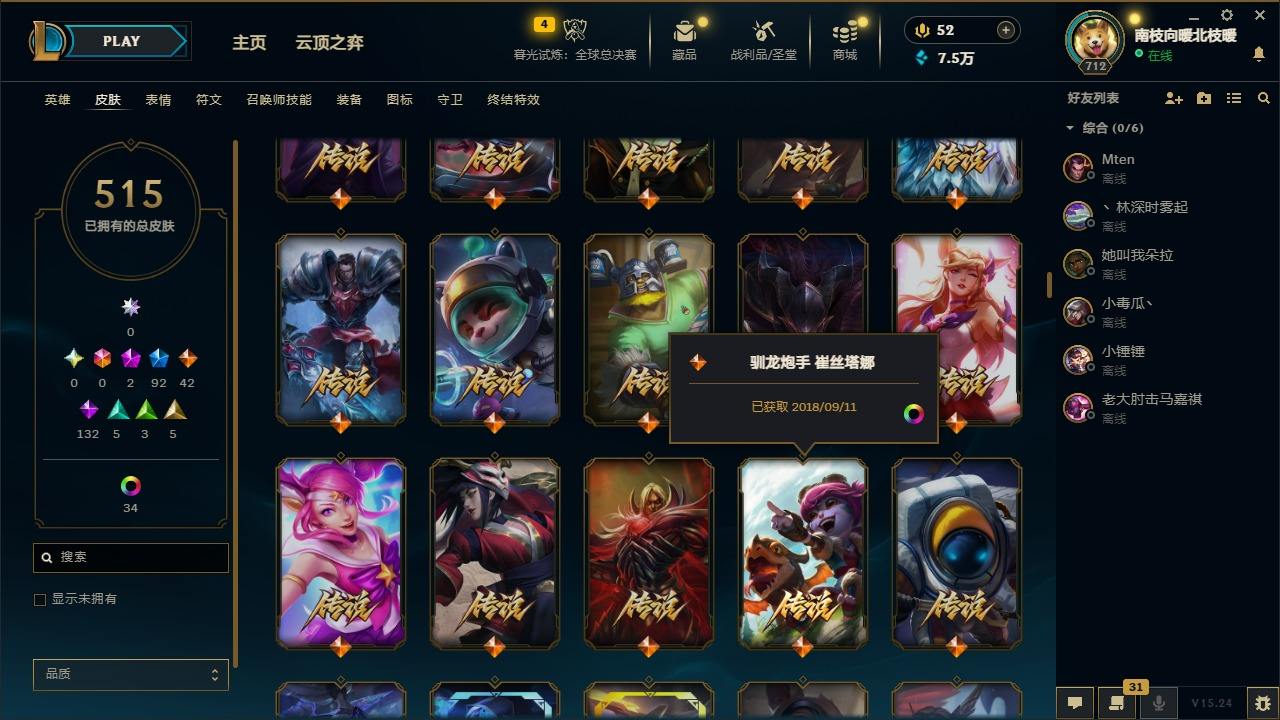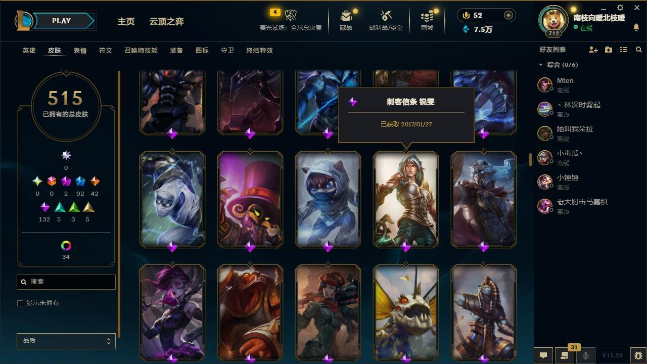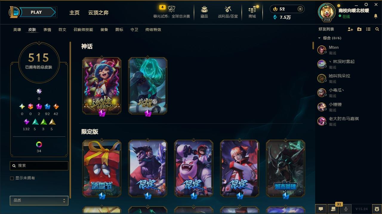 【436490】[16505692]2神话 92限定 42传说 132史诗 515皮肤 49炫彩 170英雄 可二次 可修改实名 【限定】双城之战2 微光实验室 辛吉德,养蜂人 辛吉德【情人节限定】觅心游侠 卢锡安,甜心宝贝 娑娜【赛季限定皮】胜利枪神 格雷福斯,胜利女神 奥莉安娜,胜利之剑 亚托克斯,胜利枪神 卢锡安【冠军限定系列】S13 T1 李青,S1FNC 酒桶,S1FNC 迦娜,S1F