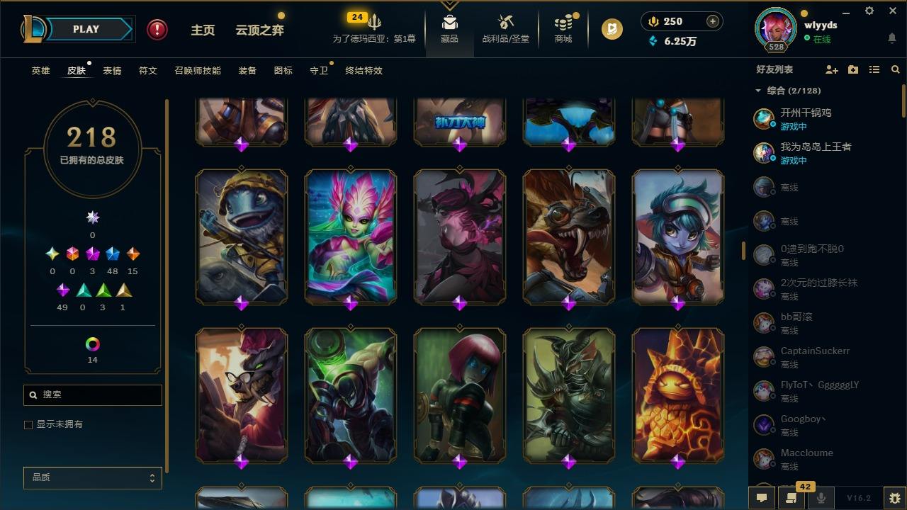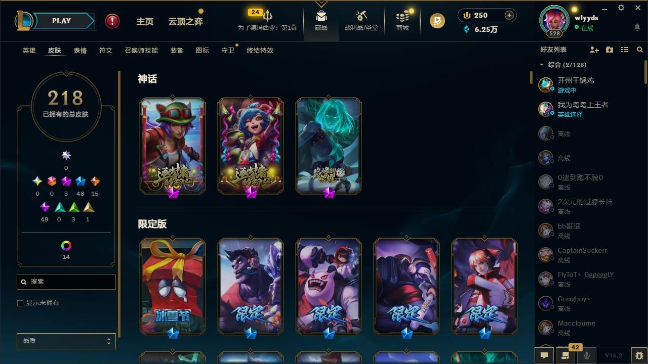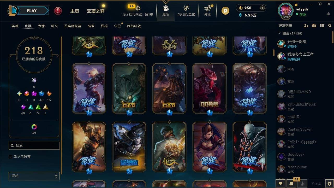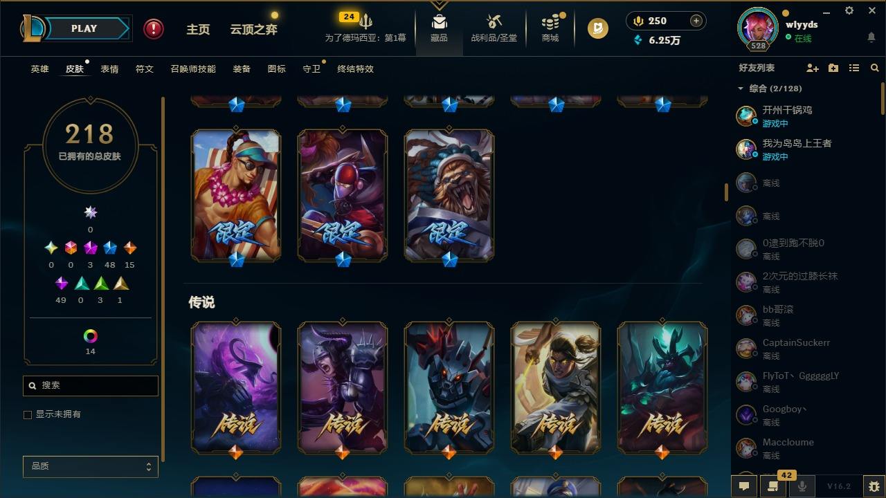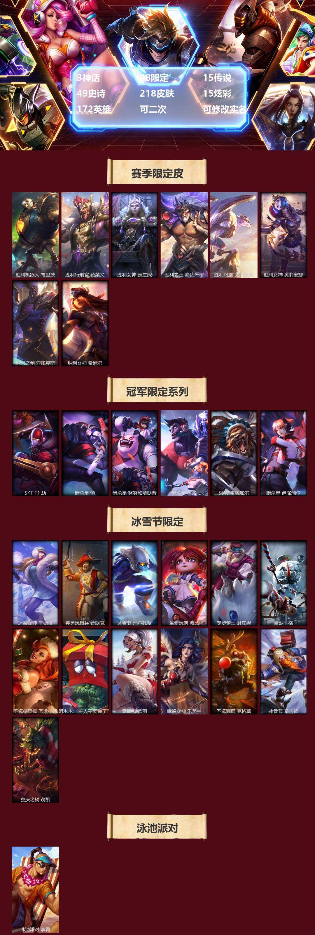 【436952】[16508765]3神话 48限定 15传说 49史诗 218皮肤 15炫彩 172英雄 可二次 可修改实名 【赛季限定皮】胜利行刑官 德莱文,胜利凤凰 艾尼维亚,胜利之王 泰达米尔,胜利女神 希维尔,胜利女神 奥莉安娜,胜利之剑 亚托克斯,胜利机器人 布里茨,胜利女神 瑟庄妮【冠军限定系列】S2 暗杀星 蒙多,S2 暗杀星 努努,S2 暗杀星 慎,S2 暗杀星 伊泽瑞尔,S3