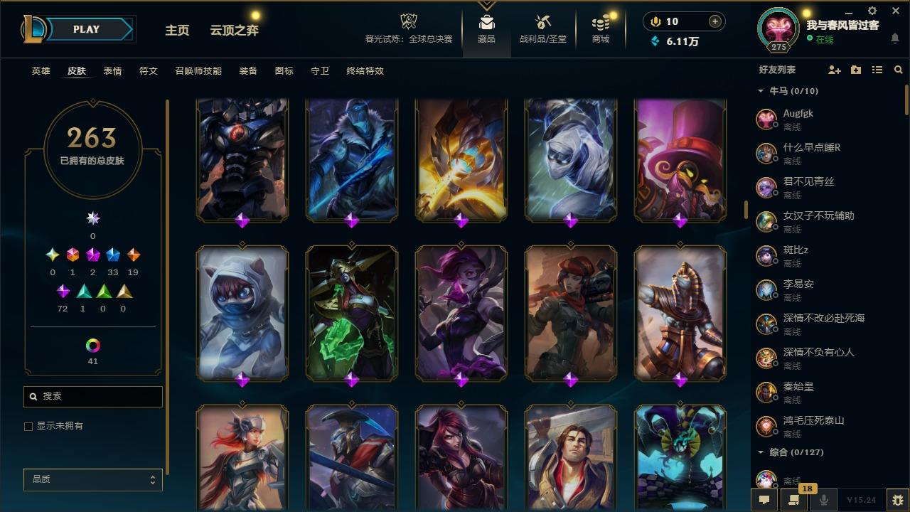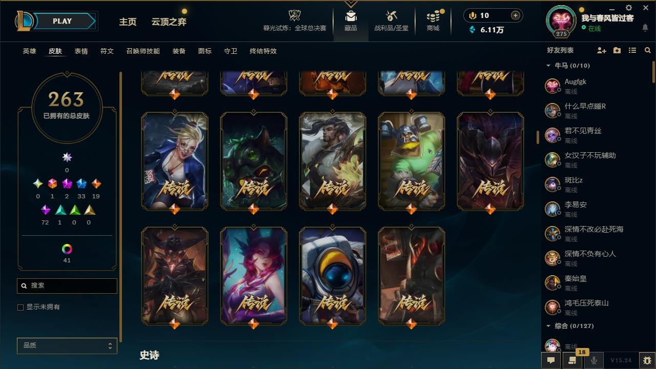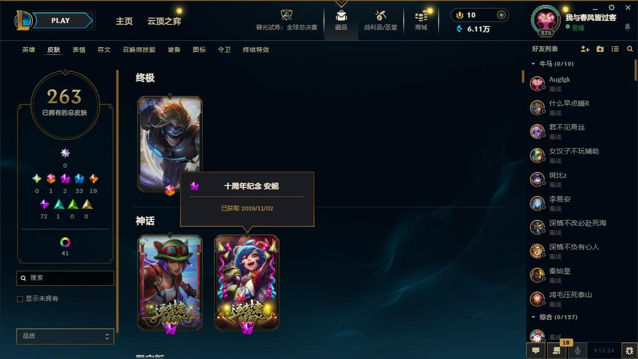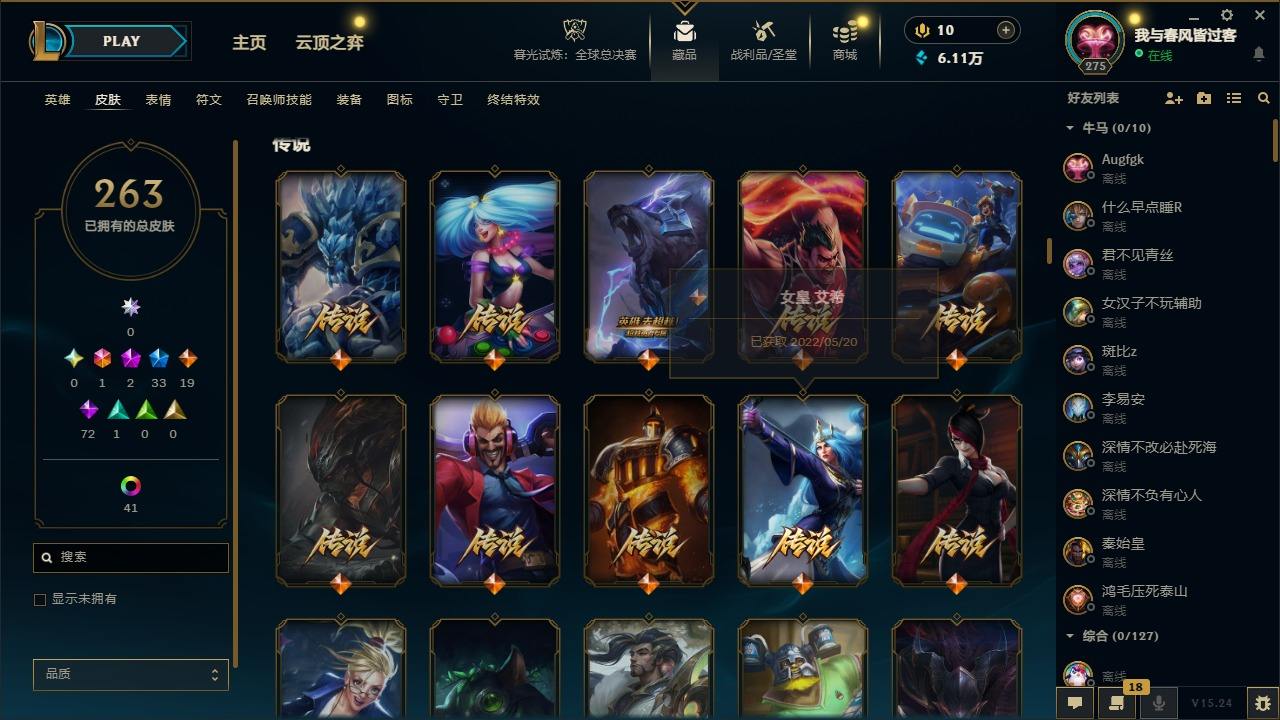 【451765】[16620107]1终极 2神话 33限定 19传说 72史诗 263皮肤 50炫彩 172英雄 可二次 可修改实名 【赛季限定皮】胜利女神-菲奥娜,胜利巨口 克格莫【冠军限定系列】S2 暗杀星 蒙多,S2 暗杀星 伊泽瑞尔,S3 SKT T1 劫【冰雪节限定】胡桃夹子 萨科,魄罗骑士 瑟庄妮,圣诞开心鬼 提莫,圣诞精灵 崔丝塔娜,圣诞狂欢 努努和威朗普,圣诞糖果棒 厄运小姐,