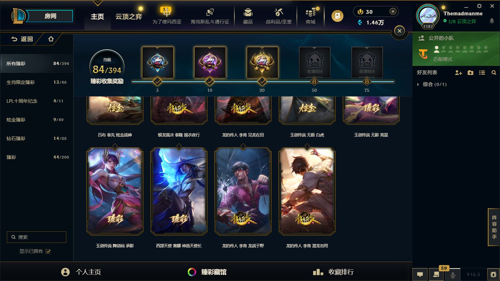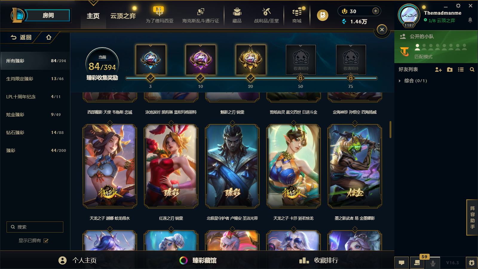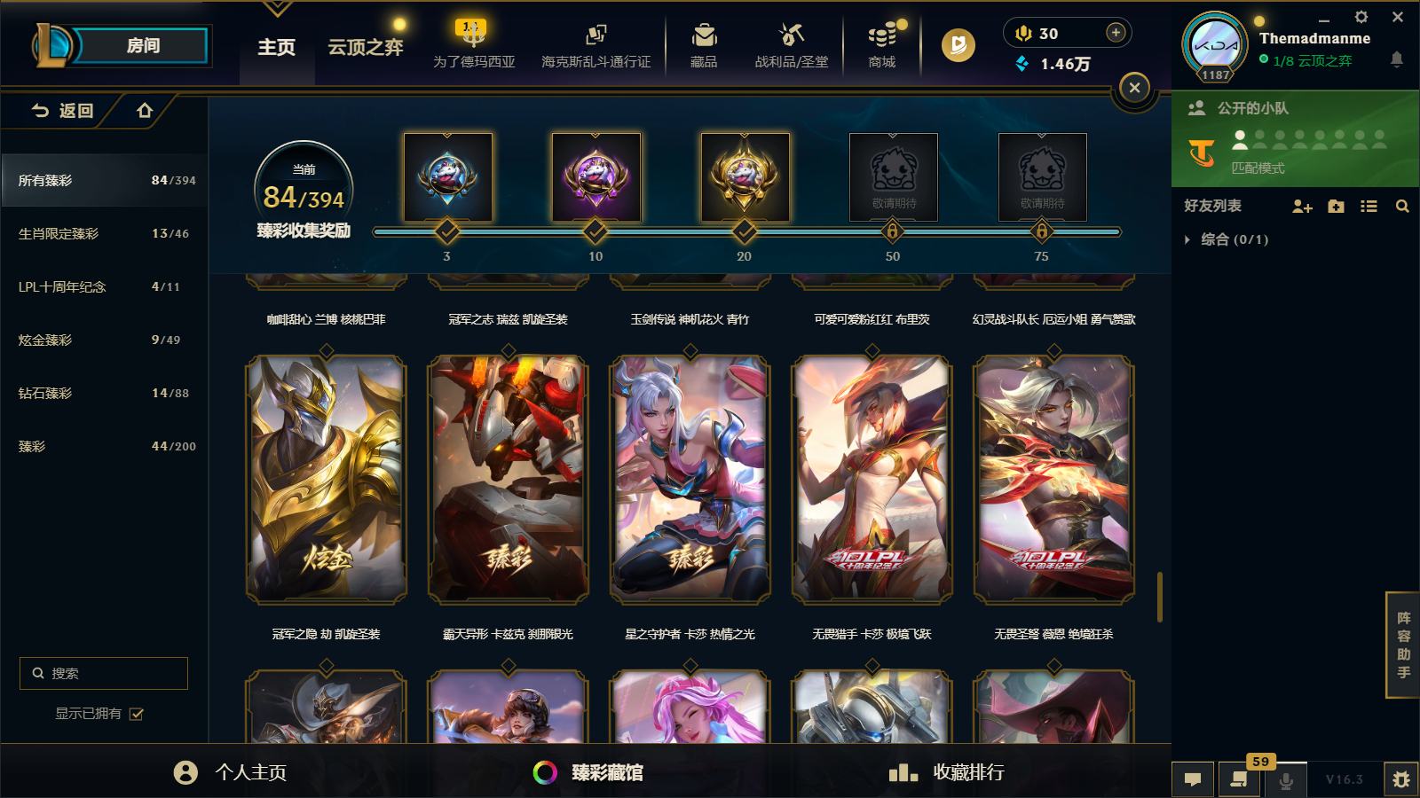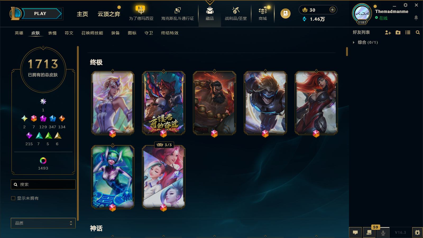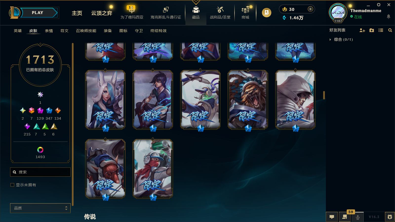 【467488】[16749653]三档卡莎!圣堂铁男!圣堂金克丝!黑夜使者!莲花之令卡尔玛!堕落神王!圣天龙!炽天使!六色龙虾!斩星魔剑!冰原酒桶!E12423-祖安1713皮1卓越7终极129神话1小小英雄 1棋盘84臻彩