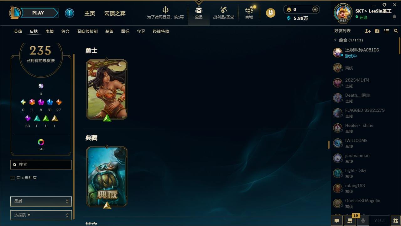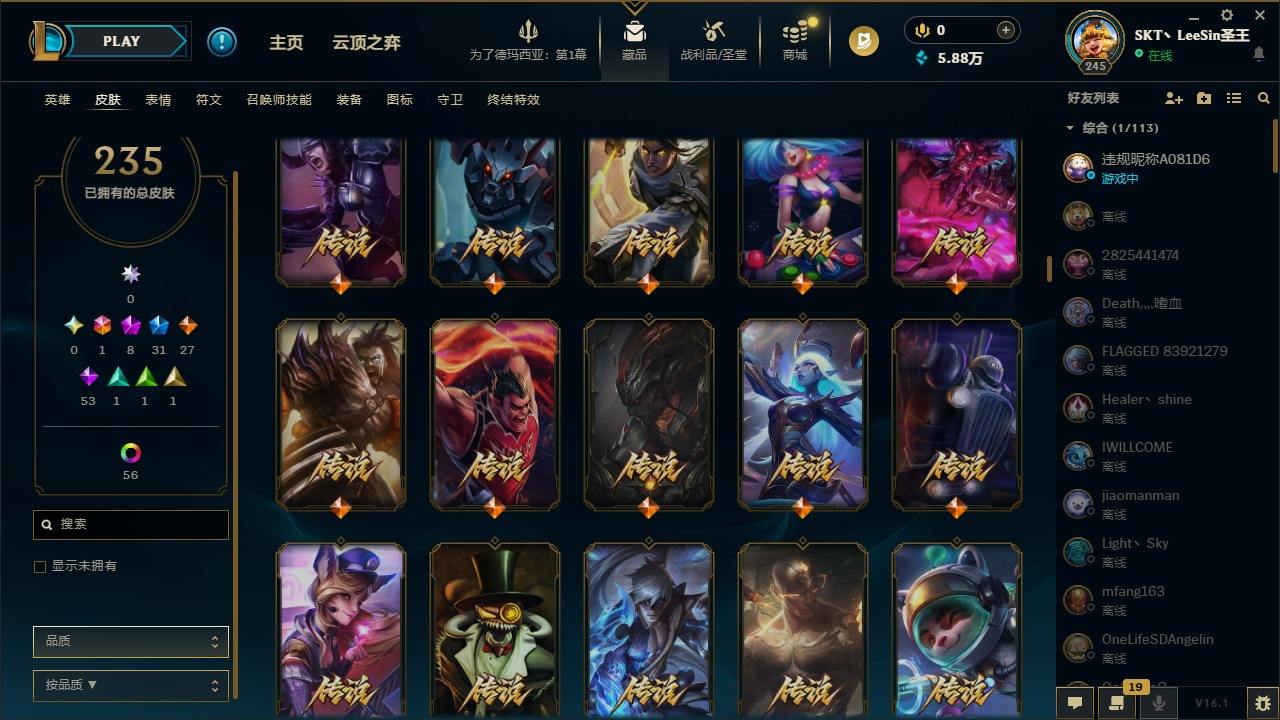 【480389】[16928238]1终极 8神话 31限定 27传说 53史诗 235皮肤 64炫彩 172英雄 可二次 可修改实名 【至臻】至臻 永恒星灵 佐伊【海克斯】摄魂 薇恩,海克斯 雷克顿【情人节限定】穿心之剑 菲奥娜,觅心女王 艾希【赛季限定皮】胜利行刑官 德莱文,胜利女神-菲奥娜【冠军限定系列】S13 T1 李青,S1FNC 迦娜,S2 暗杀星 蒙多,S3 SKT T1 李青,S