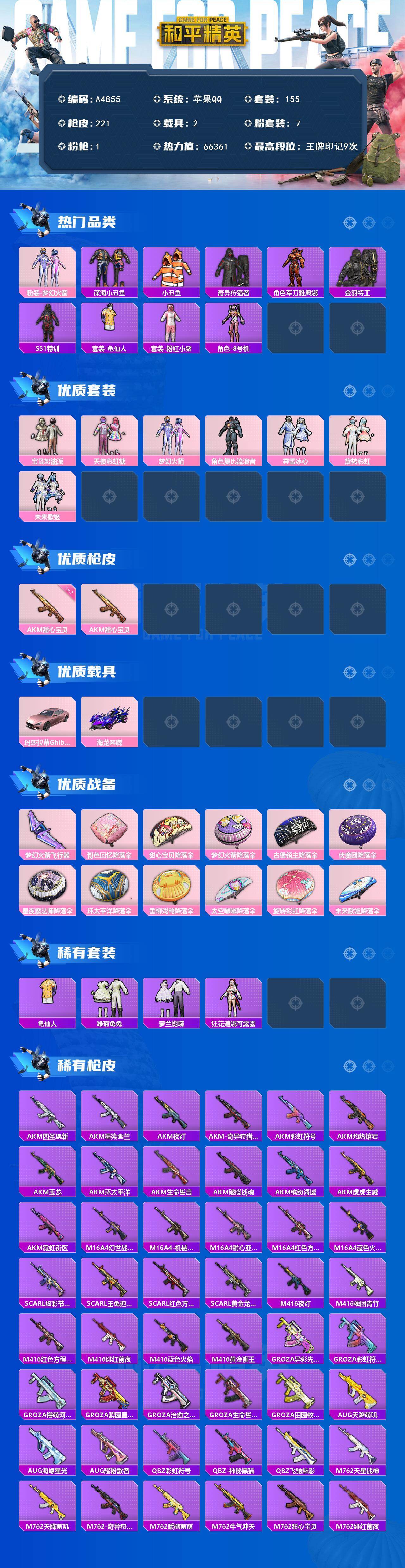 游戏区服:和平精英 / 苹果系统 / QQ帐号