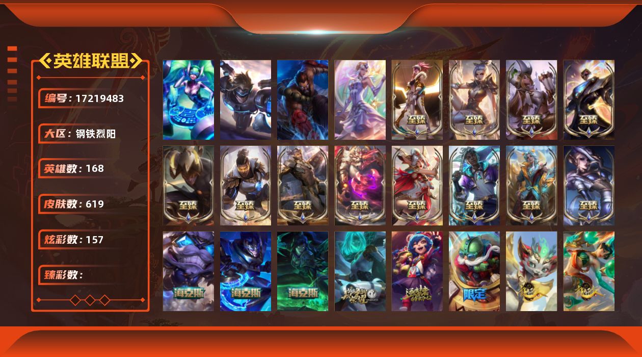 【498547】[17219483]4终极 17神话 116限定 75传说 94史诗 619皮肤 157炫彩 168英雄 可二次 可修改实名 【至臻】至臻 天龙之子 伊泽瑞尔,至臻 西部魔影 伊芙琳,至臻 K/DA 阿卡丽,至臻 玉剑传说 武剑仙,至臻 魅惑女巫 厄运小姐,至臻 未来战士 锤石,至臻 黑夜使者 李青,至臻 未来战士 卢锡安,至臻 源计划:逆流 塞拉斯,至臻 神龙尊者均衡之龙 沃利