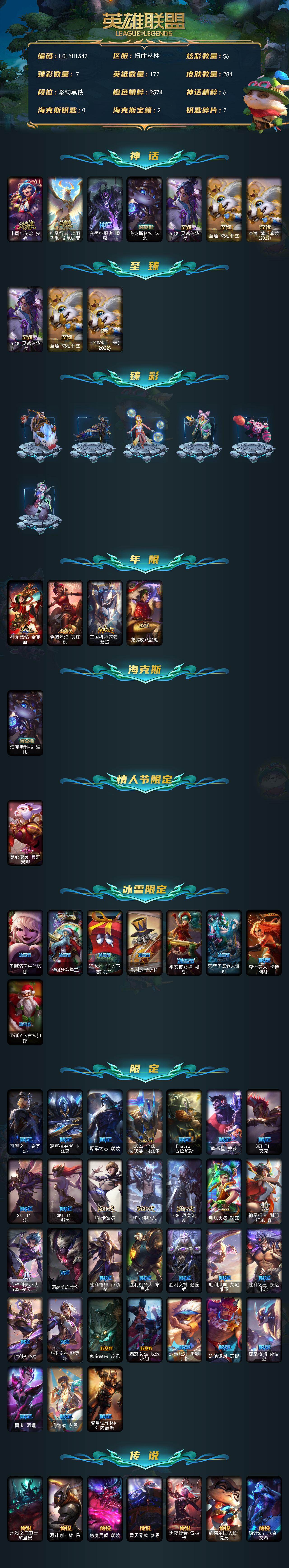 【503493】【LOLYH1542】172英雄/284皮肤/7神话/44限定/7臻彩/56炫彩/39传说/56史诗/未定级账号等级:264/十周年纪念安妮/神凰行者瑞羽凤凰艾尼维亚/灰烬征服者潘森/海克斯科技波比/至臻灵魂莲华易/至臻绒毛菲兹/至臻绒毛菲兹(2022)/至臻绒毛菲兹(2022)/无畏骑士瑟庄妮赤子初心/西部天使赛娜神选天使长/泳池派对辛德拉荔枝枝连击/玉剑传说神机花火青竹/可爱