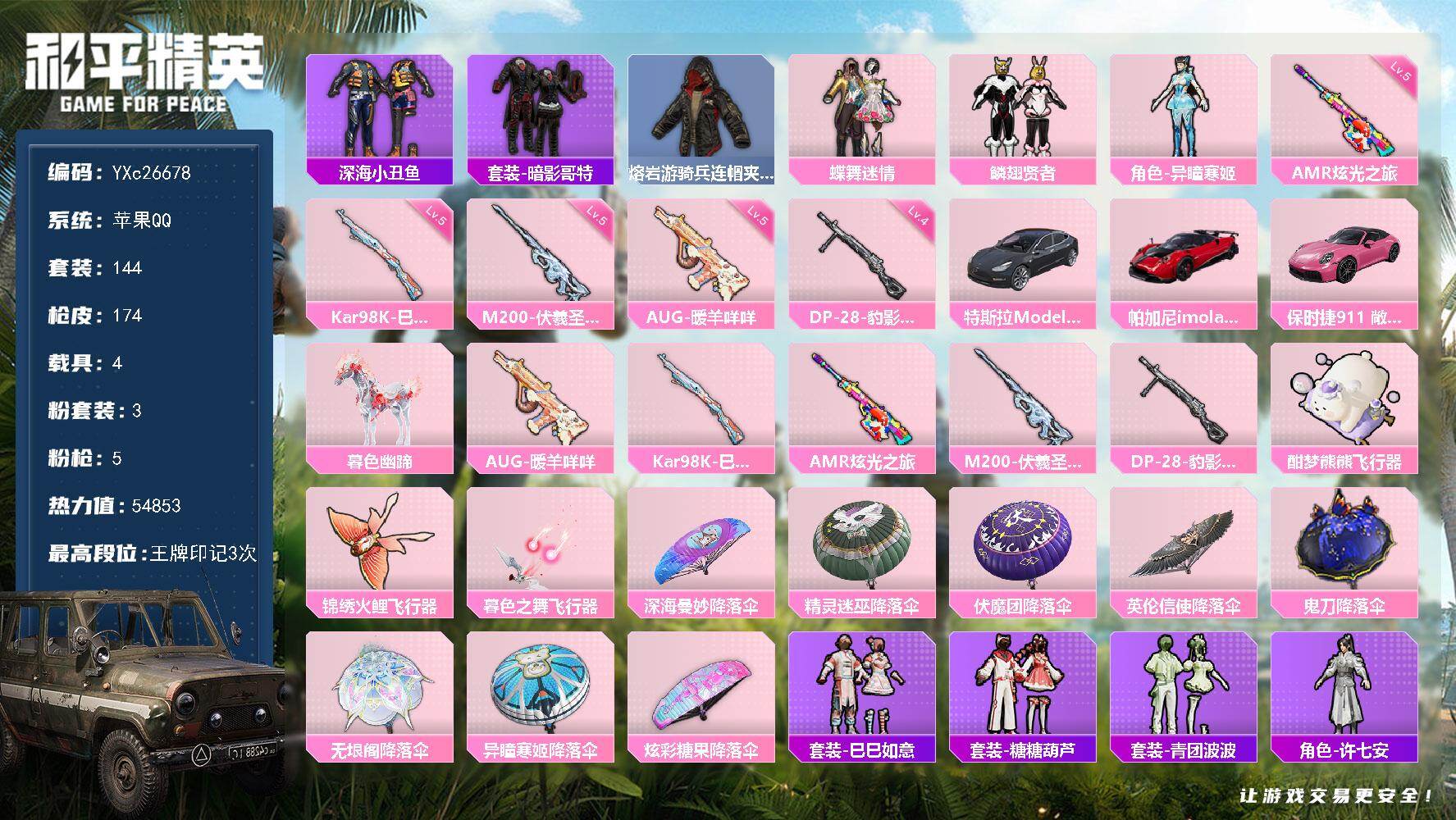 【508087】【不可二次】【苹果QQ】大橘为重 S686-奇异狩猎者 M24-奇异狩猎者 鳞翅贤者 伏地魔降落伞 特斯拉3银色 精灵迷巫降落伞 极速红龙 M762-奇异狩猎者 娴静芝兰 软嫩糖心蛋 M416-仓鼠灰灰 街舞达人 深海小丑鱼 AMR-炫光之旅 蝶舞迷情 摇滚狂鲨 AKM-奇异狩猎者 深海曼妙降落伞 白月香洋装 童话森林 AKM-缤纷海域 锦绣火鲤飞行器 风华少年志 神秘黑猫 云丝