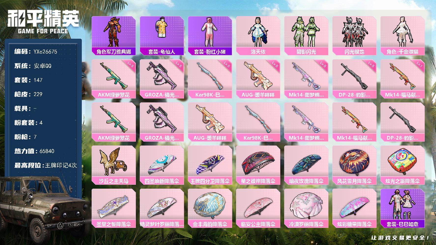 游戏区服:和平精英 / 安卓系统 / QQ账号