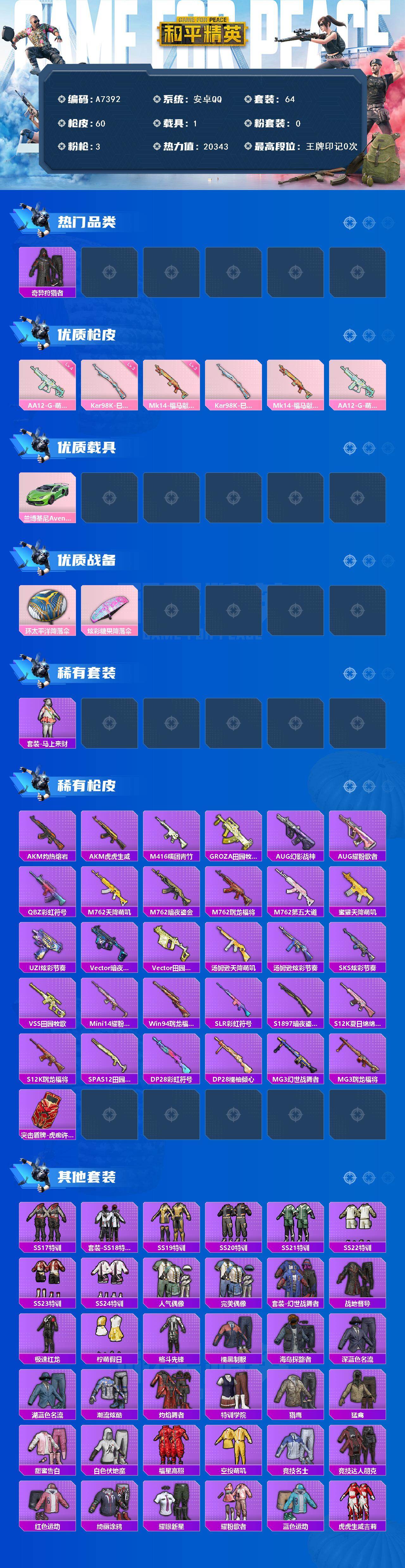 游戏区服:和平精英 / 安卓系统 / QQ账号