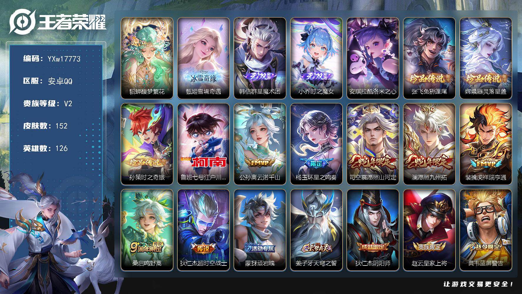 【508594】【可二次】【QQ(安卓)】水晶猎龙者 鹰眼统帅 偶像歌手 白执事 街头霸王 舞动绿茵 阿尔法小队 紫霞仙子 胡桃夹子 海之征途 未来旅行 探海日志 龙腾万里 精灵王 潮玩造梦师 三太子 孤猎 修罗 特工魅影 乐园奇幻夜 黑猫爱糖果 花好人间 女仆咖啡 牛运亨通 少女阿狸 幽兰居士 古海寻踪 摇滚巨星 丁香结 鬼剑武藏 红桃皇后 年年有余 时之恋人 阴阳师 电玩小子 冰雪圆舞曲 忍